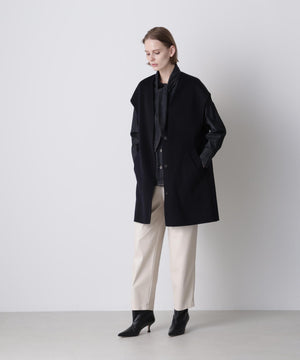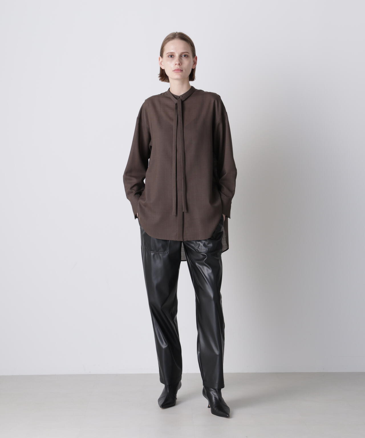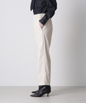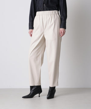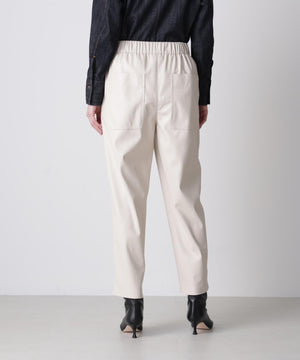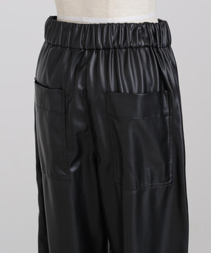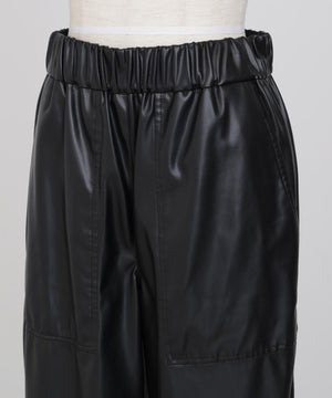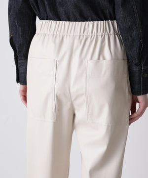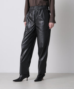 上質な質感が際立つストレートパンツ。ぬめり感のあるなめらかさとマットな風合いが魅力の湿式合皮を使用し、レザー特有のハイトレンドな印象をリラクシーな雰囲気に仕上げました。ウエストはイージー仕様で、快適な着心地を実現。抜け感のあるシルエットが、ゆったりとしたニットやオーバーシャツとのレイヤードスタイルにも自然に馴染み、着こなしにこなれた印象を添えます。デイリーからスタイリッシュなコーディネートまで幅広く活躍し、素材感とデザインの両方で上品さと存在感を演出する一着です。