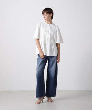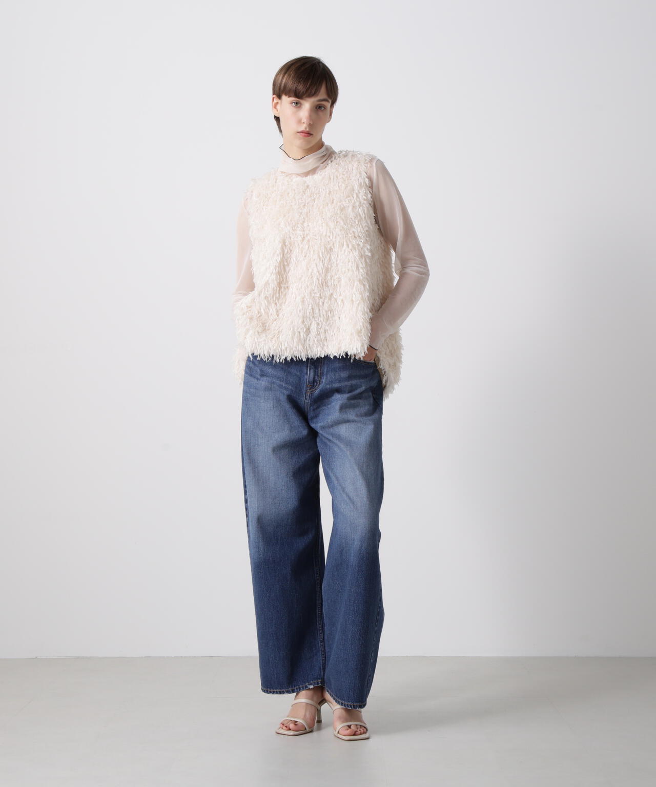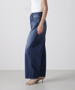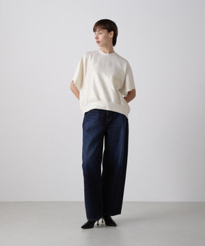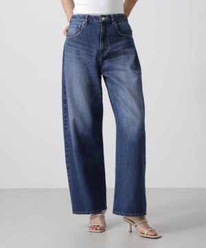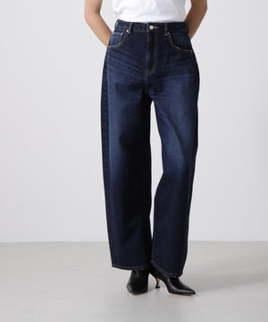 ソフトなデニム素材を使用した、しなやかで軽やかな履き心地が魅力のカーブデニム。シンプルなデザインながらも、程よい柔らかさと上質な素材感がカジュアルすぎない大人のデニムスタイルを演出します。デイリーに取り入れやすく、さまざまなトップスと合わせて洗練された着こなしが楽しめる一本です。