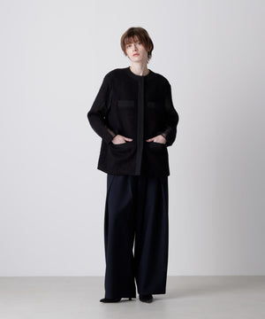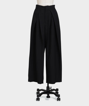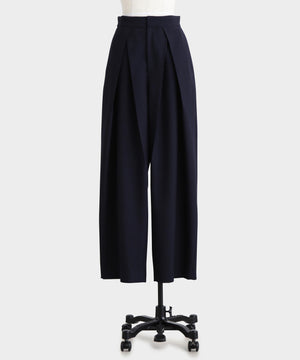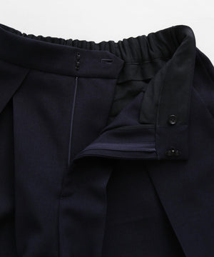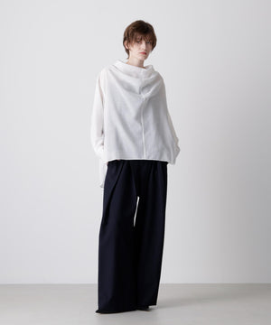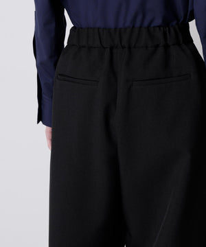 立体感のあるシルエットが魅力のバレルワイドパンツ。フロントに深く入れたクロスタックが、トレンド感とスタイリッシュなニュアンスを演出します。素材には、太番手の糸を縦横に使用したツイル生地を採用。軽やかで程よいハリがありながら、どこかナチュラルな風合いを持ち、扱いやすいイージーケア性も兼ね備えた、日常使いにうれしい一本です。