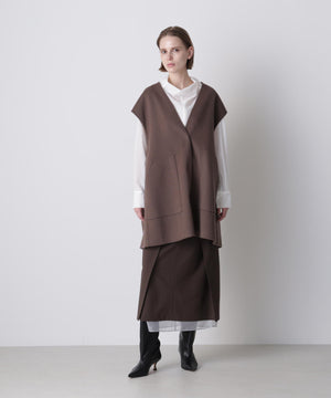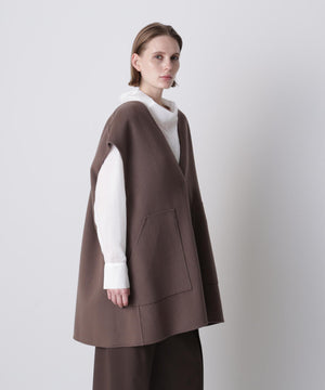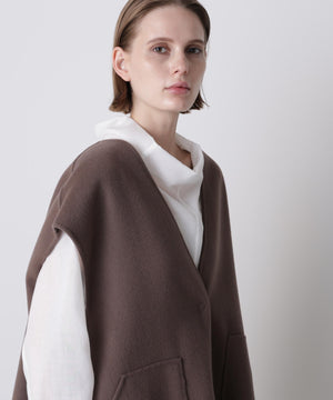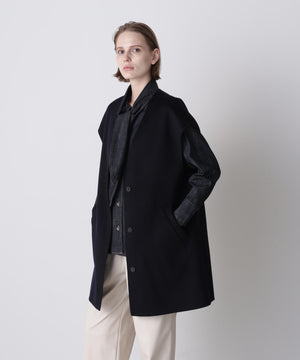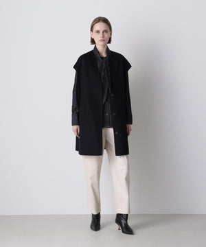 ラグジュアリーな魅力を放つハンドリバージレ。スーパー100’s原料を使用した二重織素材にカシミヤをブレンドしたエクストラファインウールを組み合わせ、ビーバー仕上げの美しいリバー素材を用いています。しなやかで軽やかな着心地と上質ならではのなめらかな風合いが特徴。オーバーサイズのフォルムは羽織るだけで洗練された雰囲気に。インナーとのレイヤードはもちろん、シャツ合わせも楽しめるゆったりとした袖ぐりがポイント。シンプルながら奥行きある存在感で、幅広いスタイリングに活躍する一着です。