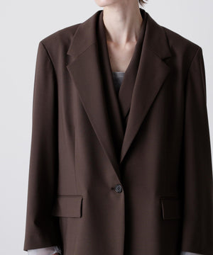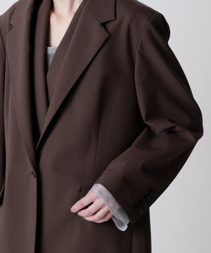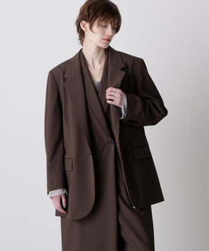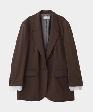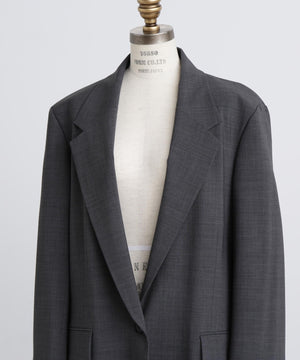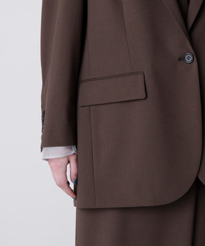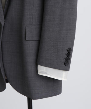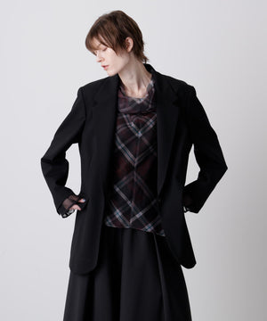 マスキュリンな雰囲気が漂うオーセンティックなブレザーに、袖口から透けるオーガンジーをレイヤードしたセンシュアルなスリーブがアクセント。ドライタッチで伸縮性のある2WAYストレッチ梳毛素材を使用し、毛羽立ちにくくさらりとした肌触りで季節を問わず快適に着用できます。