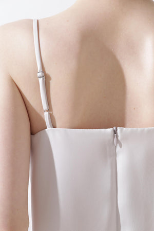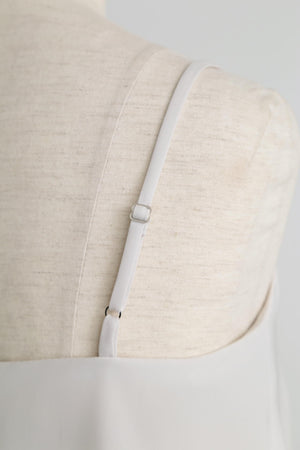 下着いらずで着用できる、パッド付きのインナーキャミソール。さりげないフレアラインがボディラインをやさしくカバーし、1枚でも着映えする美しいシルエットに仕上げました。微光沢のサテン素材は、ジャケットやジレのインナーとしてはもちろん、シアーアイテムの下に合わせても上品な印象に。肩紐は長さ調整が可能で、より快適な着心地をサポートします。日常にも特別な日にも、品よく寄り添う1枚です。