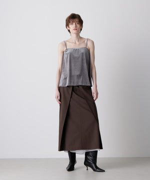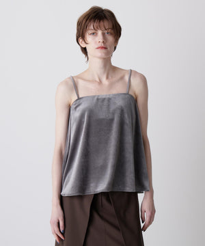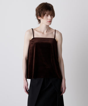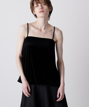 パッド付きで下着が不要なインナーキャミソール。さりげないフレアラインが体のラインをやさしくカバーし、一枚でも安心して着られる美しいシルエットに仕上げました。優雅なドレープと鮮やかな発色が魅力のトリアセテートベロア素材を使用し、秋冬の装いにぴったりのムードを演出。ジャケットやジレのインナーとしてはもちろん、透け感のあるアイテムの下にも重宝します。肩紐は調整可能で快適なフィット感を実現しました。
