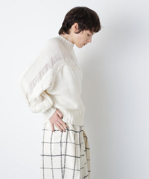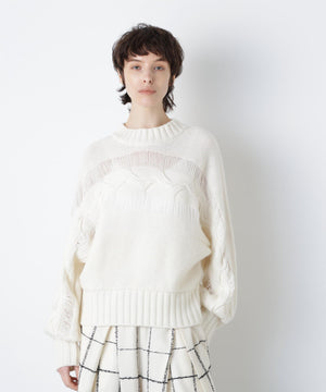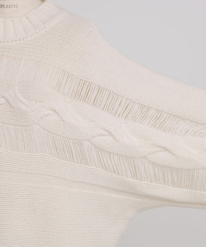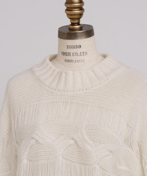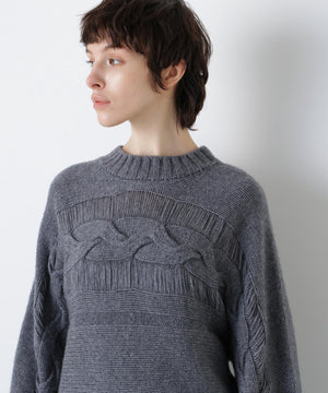 贅沢な風合いが魅力のデザインニット。23AWシーズンに展開したウールカシミヤのケーブルニットをベースに、アーカイブとして再設計しました。カシミヤを30%贅沢にブレンドすることで、しなやかでとろみのある素材感が生まれ、上品で高級感のある印象を演出。ケーブル編みのディテールが立体的で華やかさを添え、シンプルなボトムスと合わせるだけで着こなしを洗練されたスタイルに引き上げます。リラクシーさとエレガンスを兼ね備えた一着です。