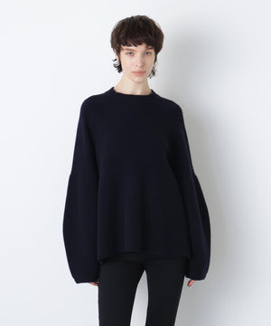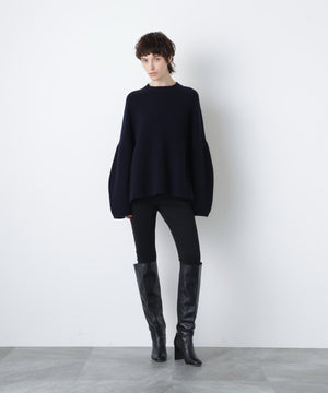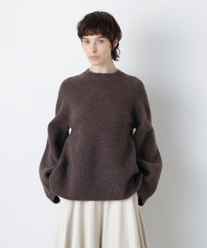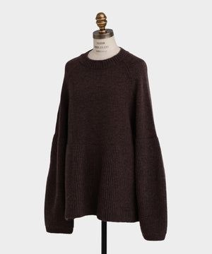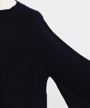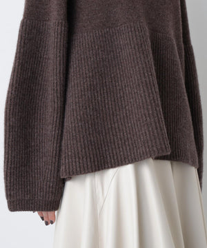 上品で印象的なデザインニット。カシミヤブレンドのスーパーファインウールを使用し、ペプラムや袖下の部分を畔編みで切り替えることで、膨らみのある構築的なフォルムを実現しました。シンプルになりがちなニットスタイルも、計算されたデザインがアクセントとなり、着こなしを華やかでモードな印象に引き上げます。柔らかく滑らかな素材感と立体的なシルエットが、デイリーから特別なシーンまで幅広く活躍する一着です。