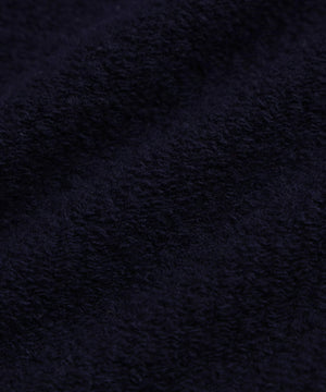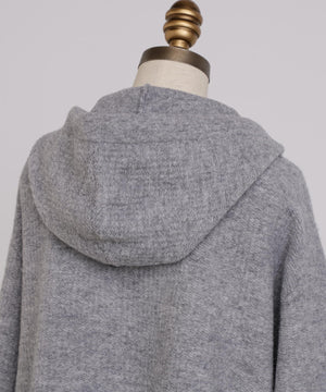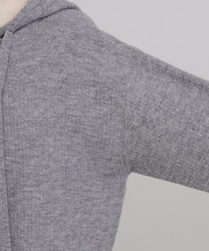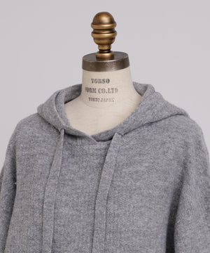 表情豊かなパイルニットのフーディー。表側に太番手、内側に細番手の糸を使用した特殊な編み方で立体感を生み出し、素材感を際立たせました。オーバーサイズのシルエットにより、抜け感のある大人カジュアルな印象を演出。空気を含んで軽やかで暖かく、リラクシーな着心地でありながらも上品な高級感を備えています。シンプルながらも計算されたデザインが、日常のコーディネートに華やかさと洗練された印象を添える一着です。