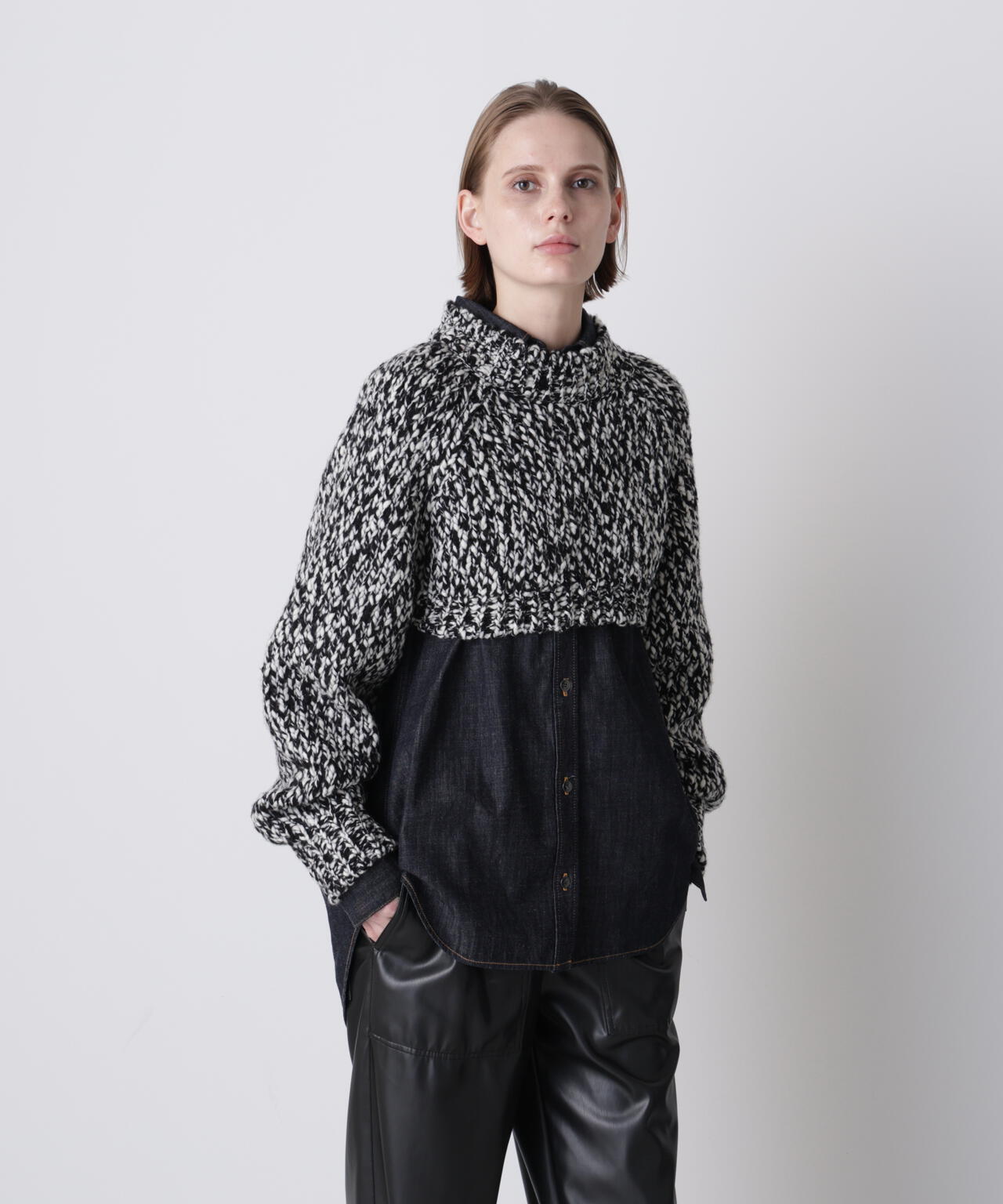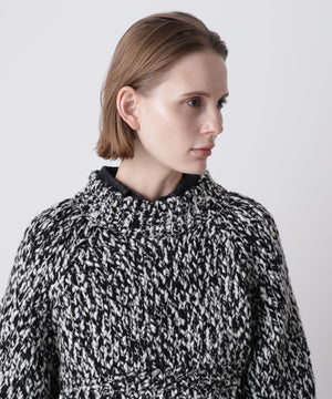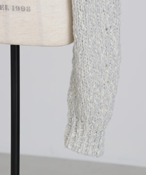 ミックスカラーが魅力のバルキーニット。ナチュラルな表情を生む大粒スラブ糸を使用し、ミックスカラーで奥行きのあるニュアンスを加えた一枚です。ざっくりとした編み地が存在感を放ちつつ、やわらかで温かみのある印象に。アームウォーマー風のスリーブがデザインポイントとなり、シャツやタートルネックとの重ね着でスタイルの幅が広がります。シンプルなボトムスに合わせるだけで、コーディネートを華やかに引き立ててくれるアイテムです。