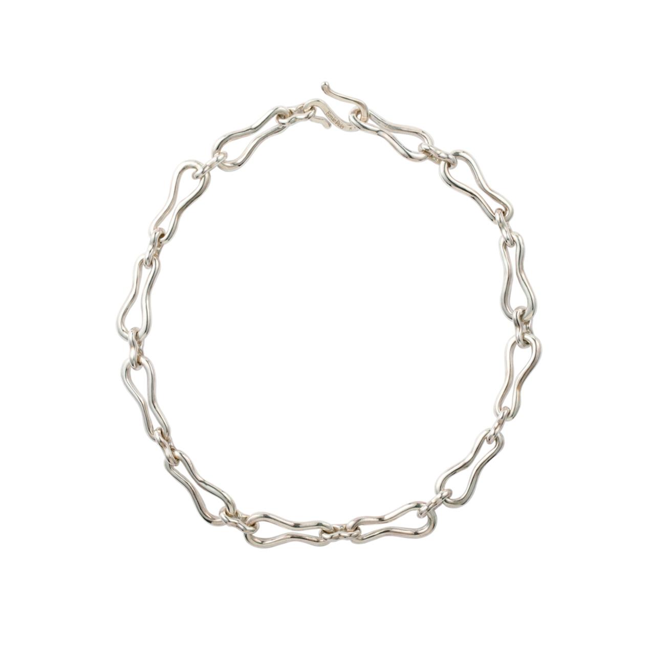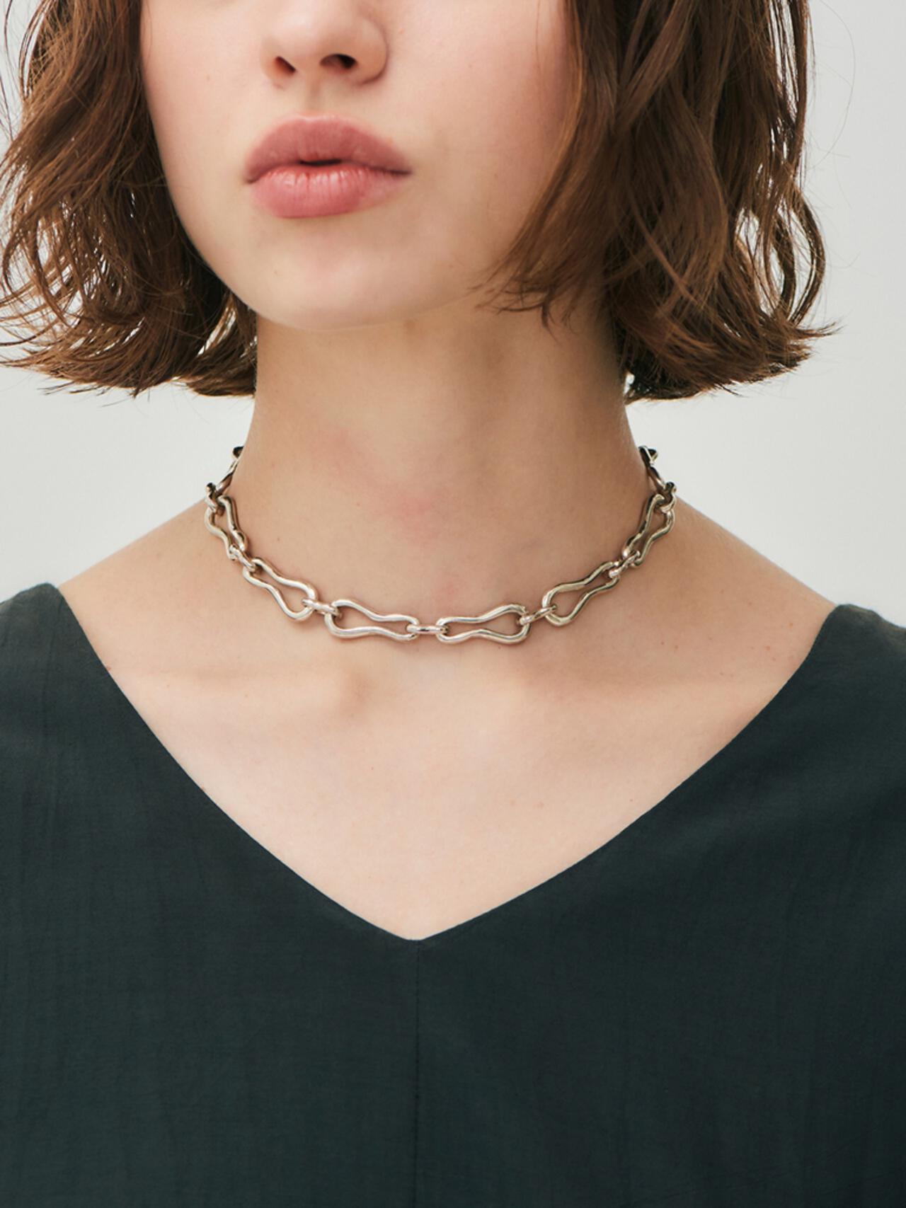 こだわり抜いた曲線が連なるパーツが組み合わされた、シンプルで肌馴染みの良いチェーンネックレスです。