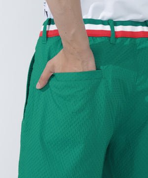 配色ラインのゴムベルトが目を引く、つぶつぶストレッチショートパンツ。