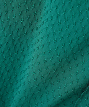 さりげない凹凸感ドット柄を軽量感のあるポリエステルで表現した、ドライタッチな質感が特徴のポリウレタンをブレンドしたポリエステル素材を使用。