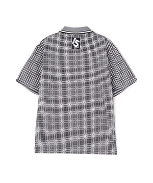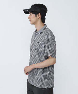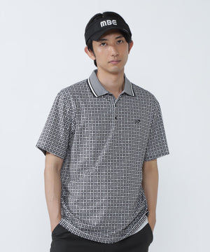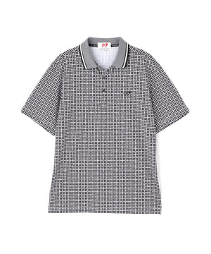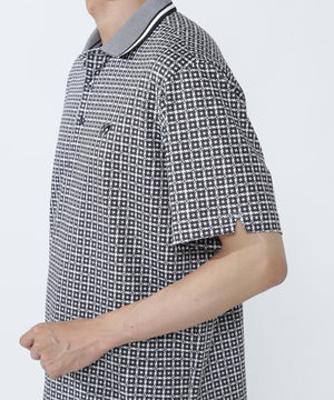 SPX150d天竺×カノコボーダー半袖ポロシャツ <千鳥プリント>