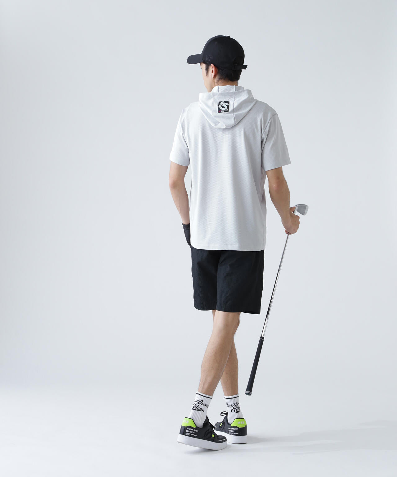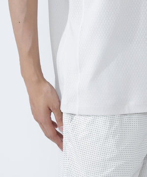 体の動きをスムーズにしてくれる優れた伸縮性を持ち、肌との接触面積を少なくして汗をかいても肌に張り付きにい通気性、吸水速乾性に優れた夏ゴルフに最適な素材を使用しています。