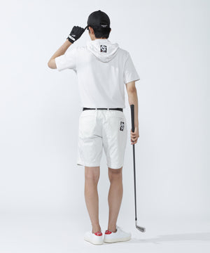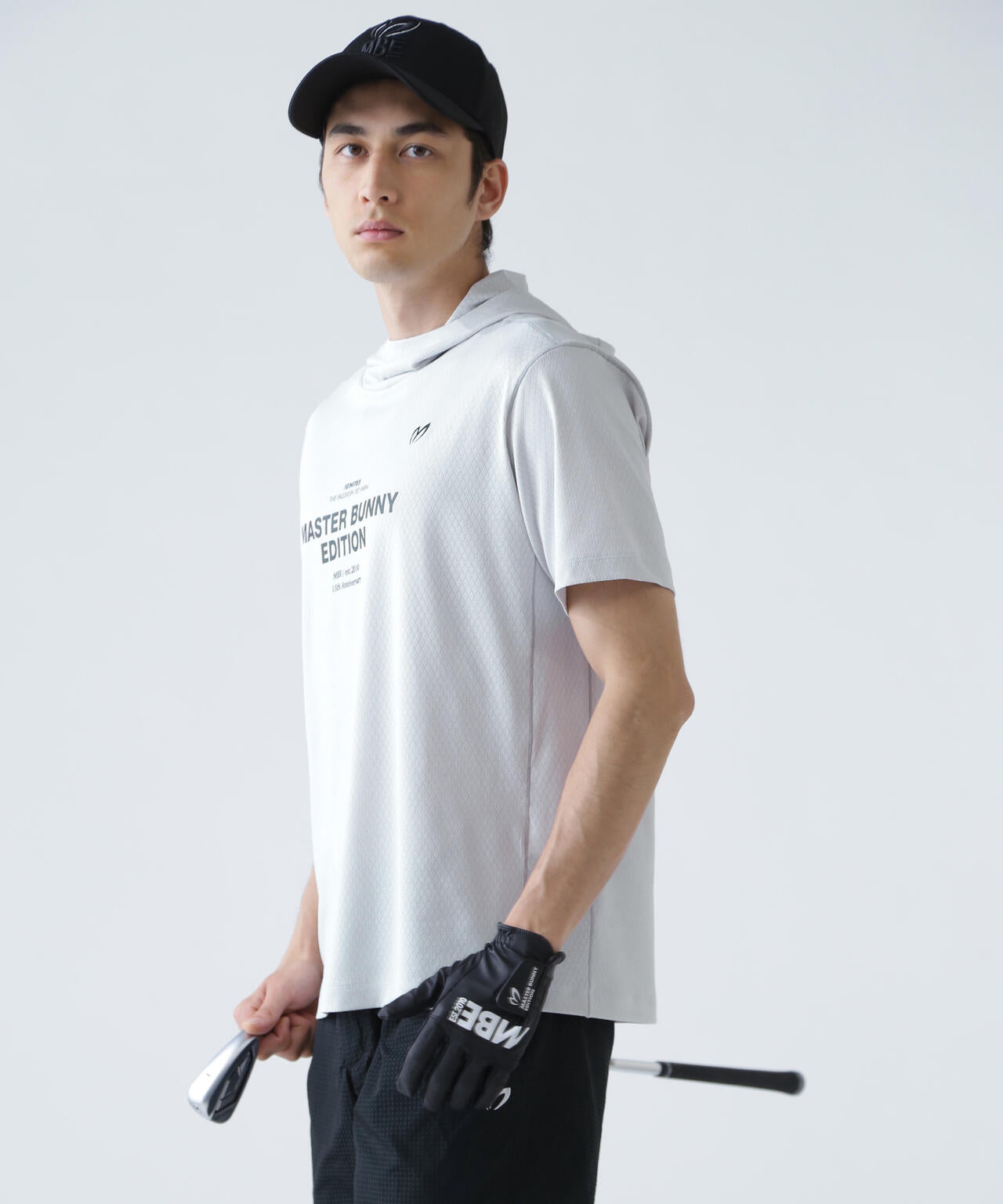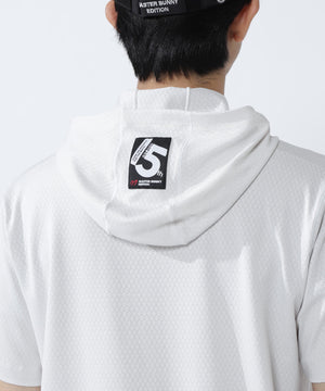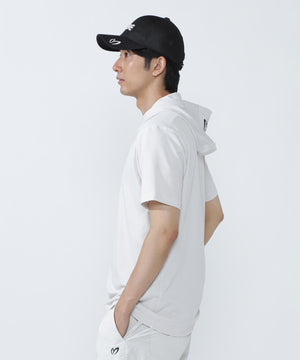 表面に細かな立体的なダイヤ模様がある生地を使用した、ダイヤベアジャガード半袖フーディ。
