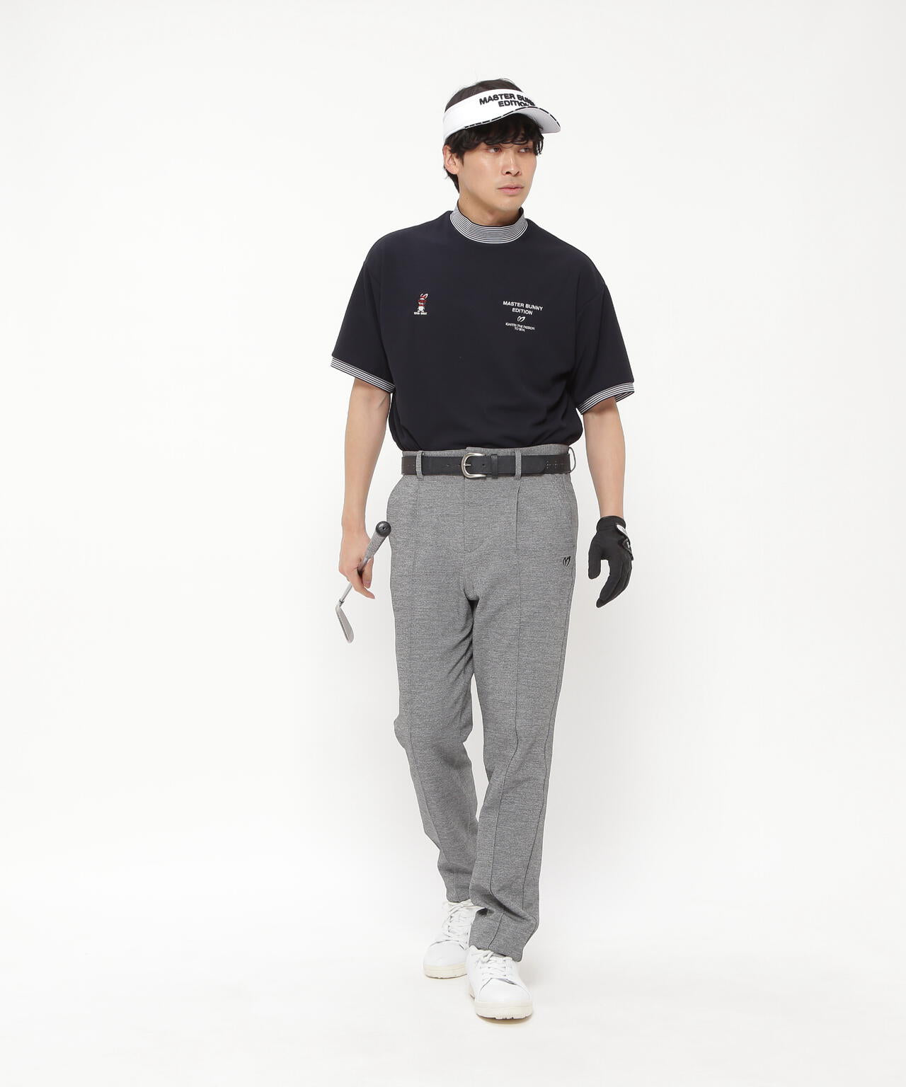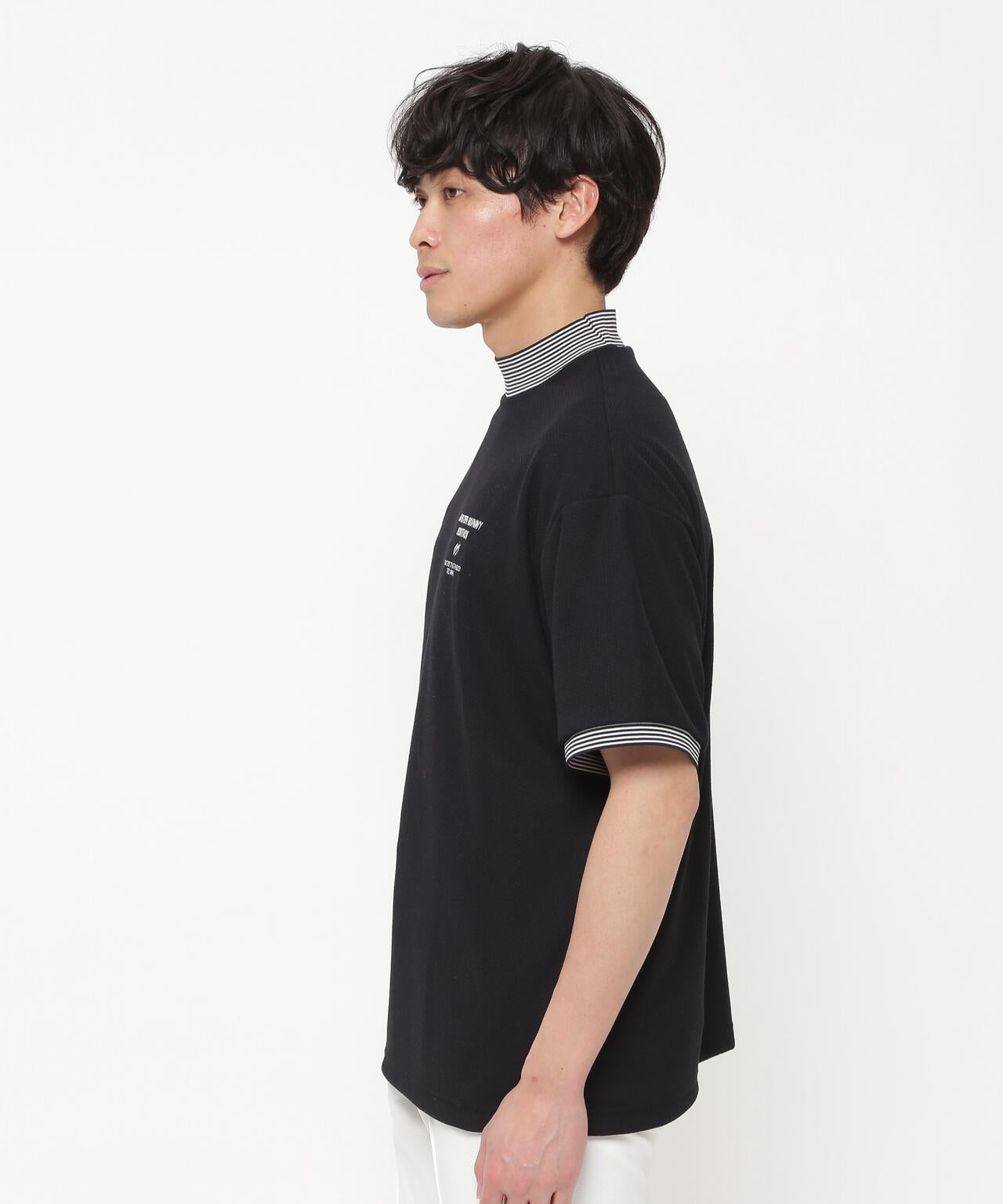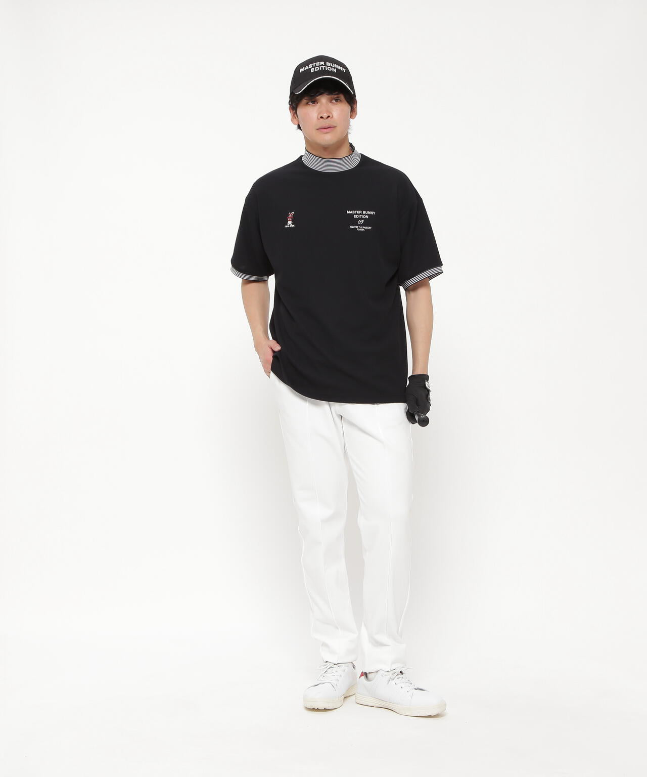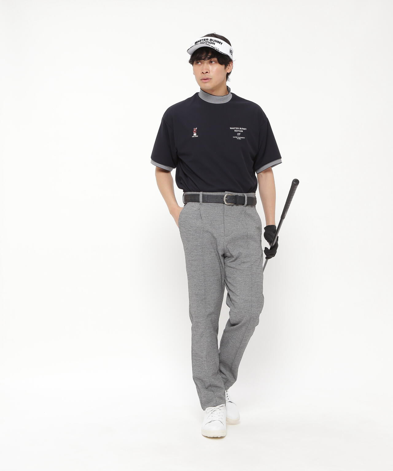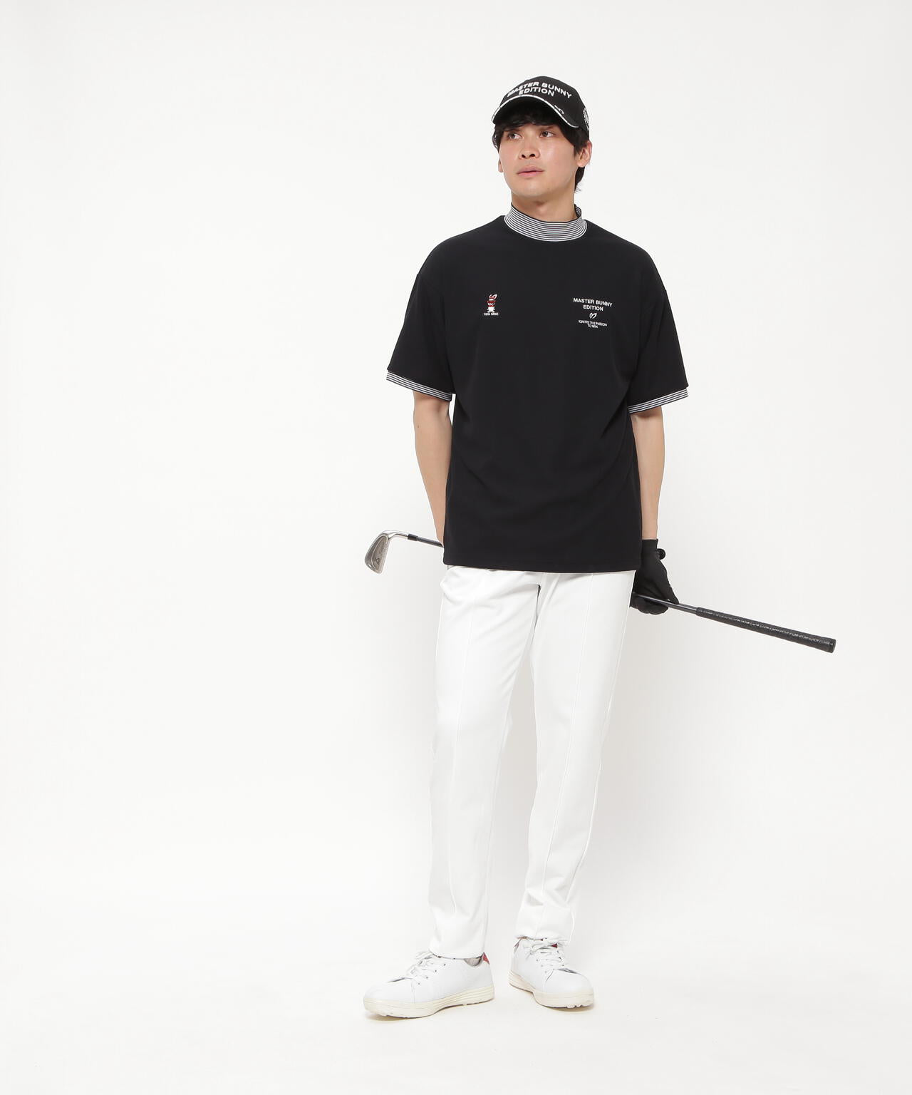 細かなボーダー柄で切替えた襟元がコーデのポイントになる、SWAGGY BUNNY SPX 半袖モックネックプルオーバー。適度なゆとりを持たせて快適さを追求したシルエットに仕立てた、一枚着るだけでサマになるアイテムです。独特の膨らみ感と滑らかな表面感が特徴の、吸水速乾性、ストレッチ性に優れた軽やかで着心地を体感できます。着ると身体のラインがキレイにみえる美シルエットで、ゴルフに、練習に、トレーニングに幅広く活用できる逸品です。