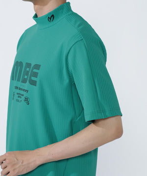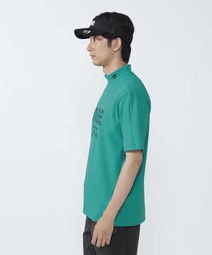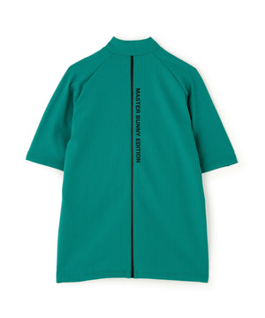 表面感のあるサッカー表情が特徴の、75dフルダルサッカーストライプ半袖ハイネックカットソー。