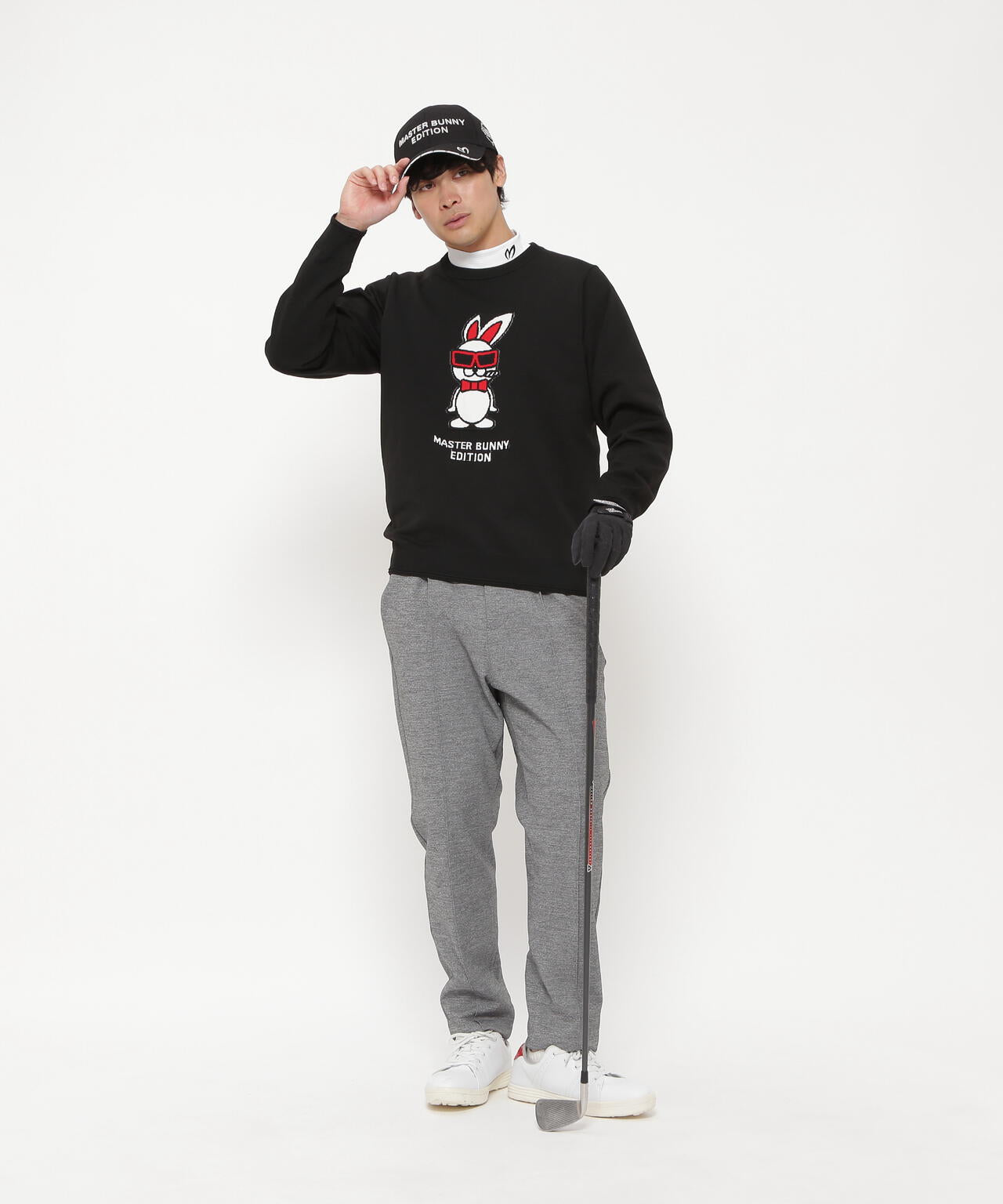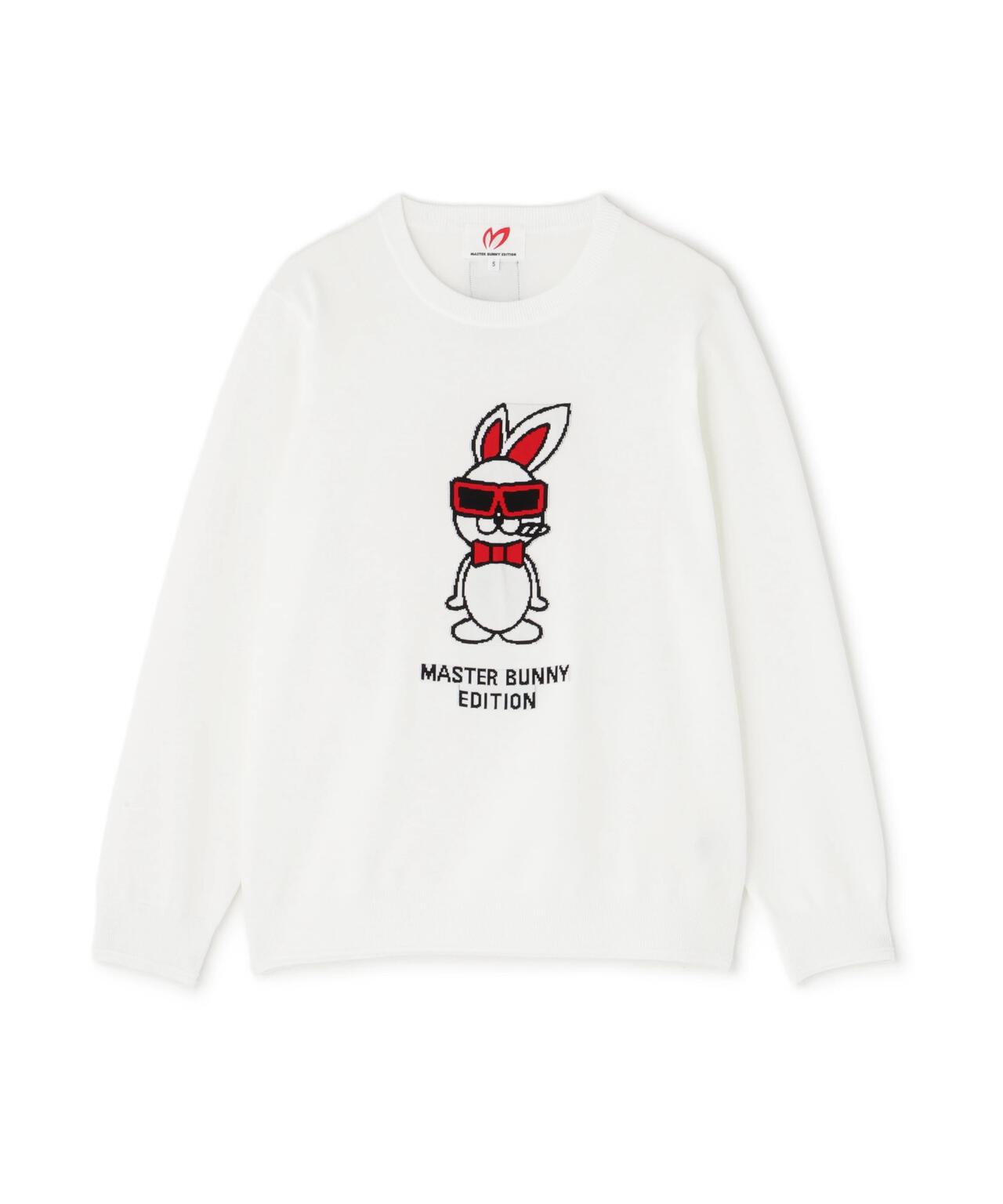 MBEのキャラクターのSWAGGY BUNNYでフロントにインパクトを与えた、SWAGGY BUNNY 天竺編みクルーネックニットプルオーバー。肌に直接あたってもチクチクしない、薄くて伸縮性があり、ソフトで肌触りの良いポリエステル素材を使用しています。さまざまなインナーに合わせやすい、適度にゆとりを持たせたシンプルでスッキリとしたシルエットを採用。ゴルフからデイリーシーンまで幅広く使える、着回し力抜群のブラックとホワイトの2カラー展開でご用意しています。