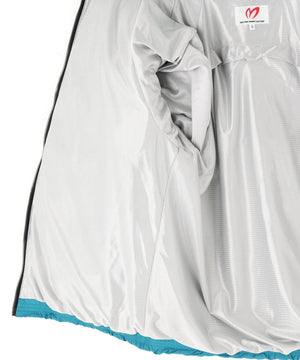 スイングしやすいラグラン袖のデザインがポイントの、動きやすく、軽くて温かい、レインアイテム並みの撥水性で雨をはじく中綿入りの防寒アウターです。