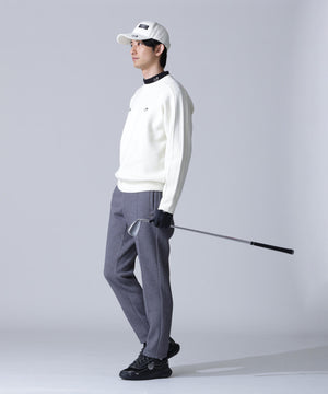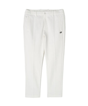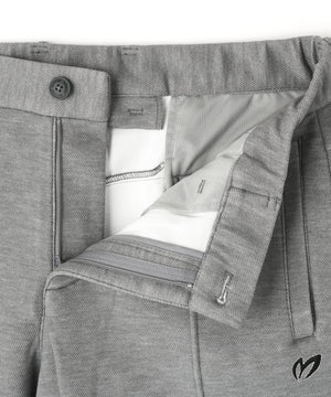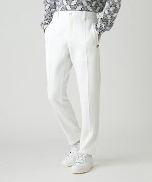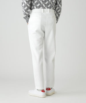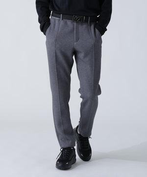 きれいめで上品な印象を与えるセンターシームを配置した、鹿の子ダンボールパンツ。
