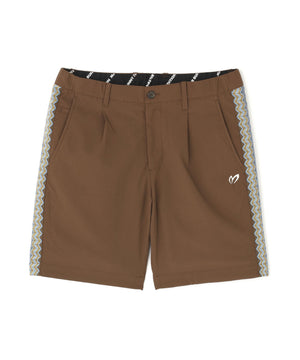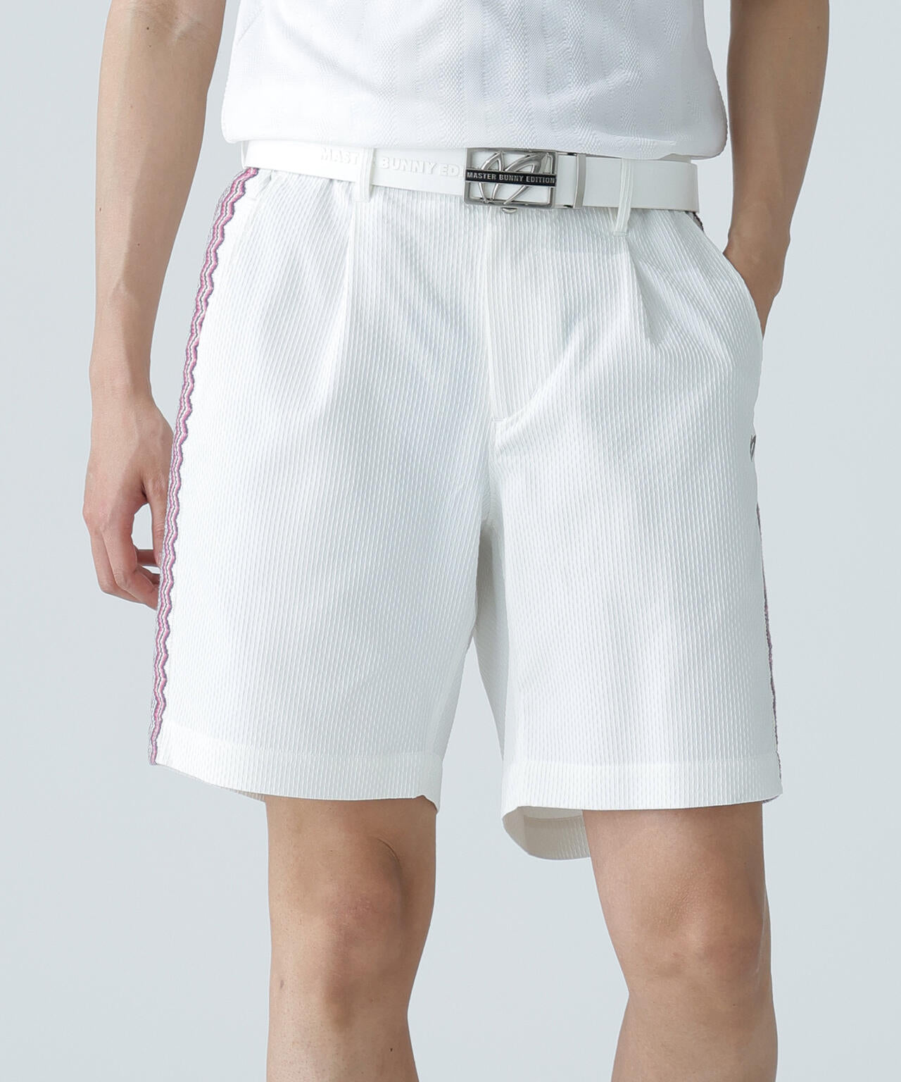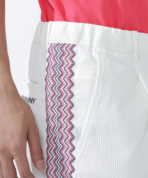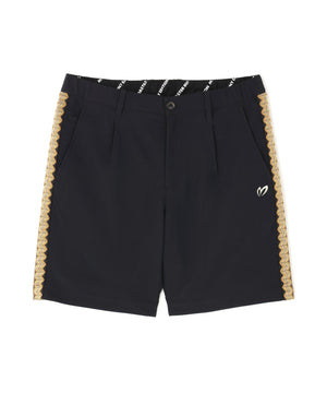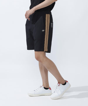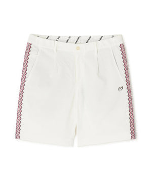 ジグザグラインのサイドテープがコーディネートのアクセントになる、2WAYドビーストレッチショートパンツ。