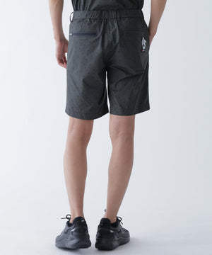 2つの高機能ポリエステル糸を組み合わせた、ストレッチ性、形態安定性、快適な着心地を兼ね備えたサスティナブルな素材を使用した、SPX×TEXBRIDプリントショートパンツ。