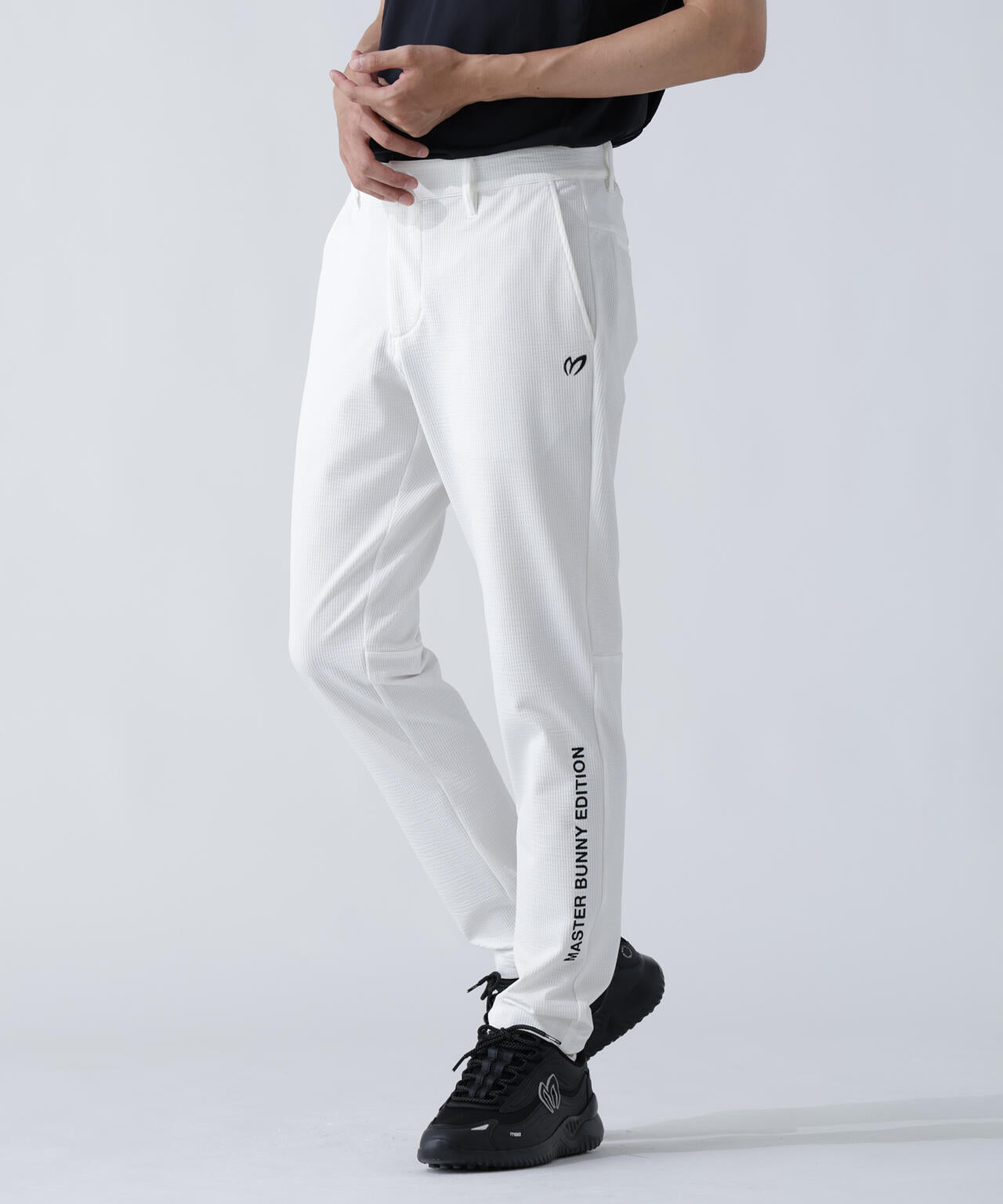 膝下に入れたロゴがスポーティーなアクセントになった、ゴルフからデイリーまでノンストレスなはき心地を体感できるアイテムです。