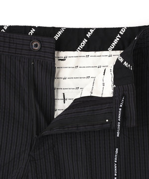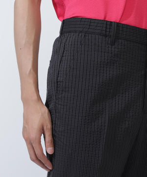 センタープレスを施して細身のスッキリしたシルエットに仕立てた、ストライプパンツ。