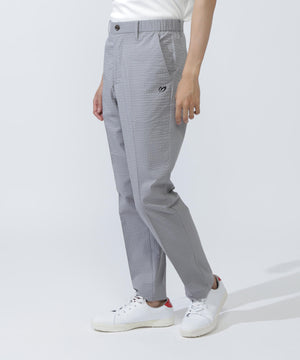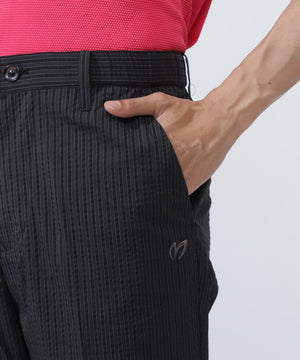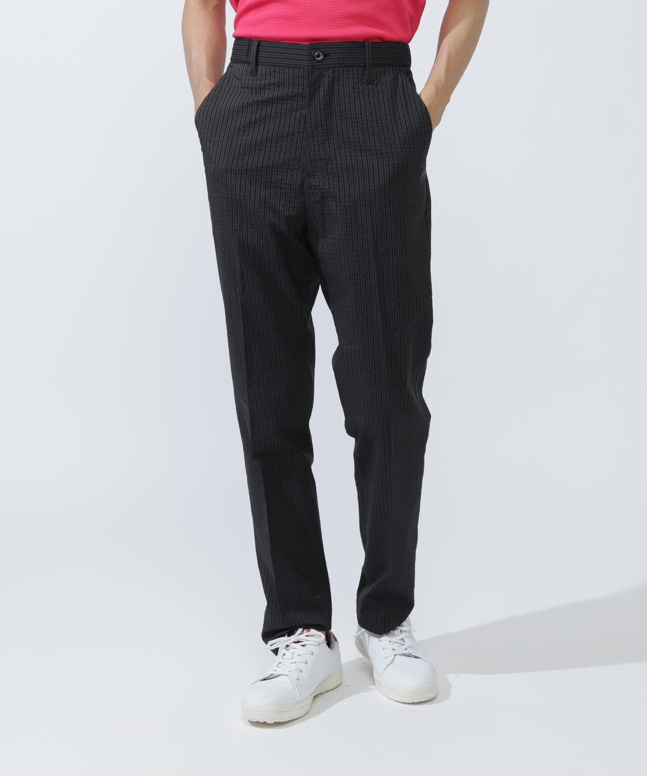 肌触りの良いポリエステルコットンにストレッチを効かせた、ゴルフに最適な生地を使用したスタイリッシュな印象のパンツです。