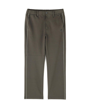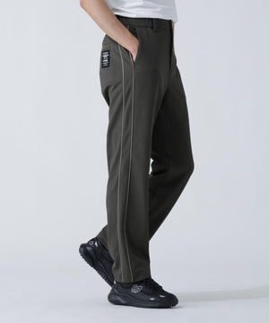パイピングのサイドラインでスポーティーなアクセントを効かせた、幾何学柄ジャガードパンツ。