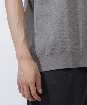 凸凹したハニカム状の通気性の良い編み地の素材を使用した、ハニカムリブスタート半袖ポロシャツ。