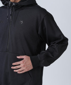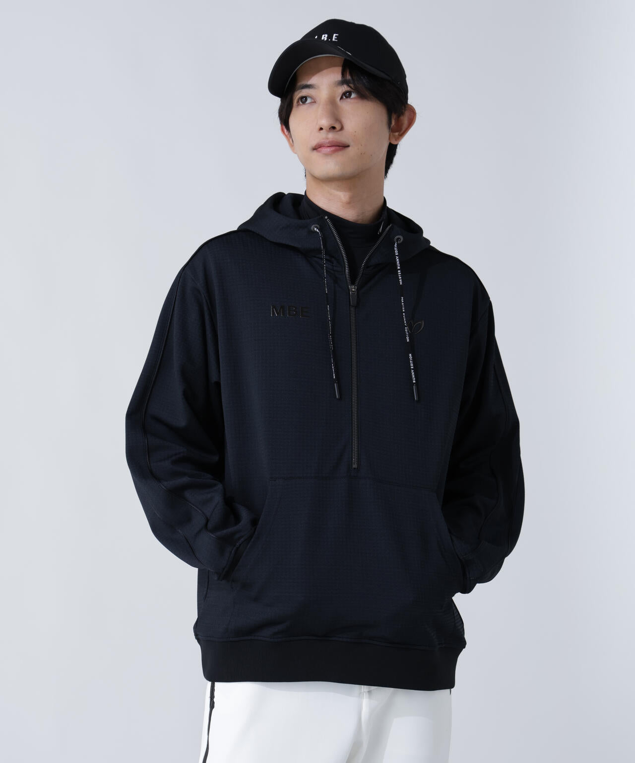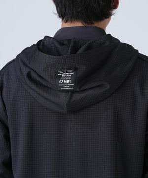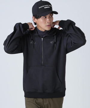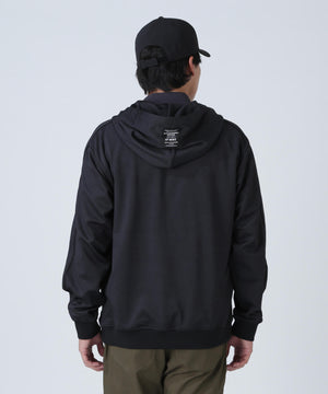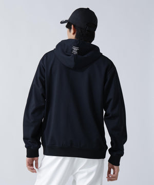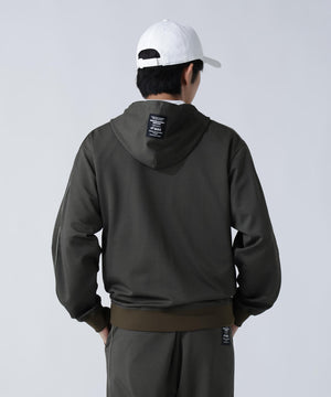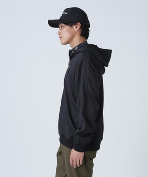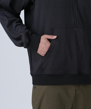 フロントジップを長めに入れることで、プルオーバーの着脱のしにくさの解決とデザイン性を両立。