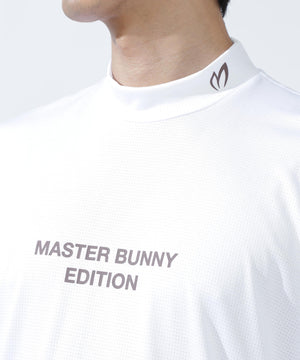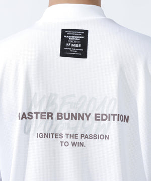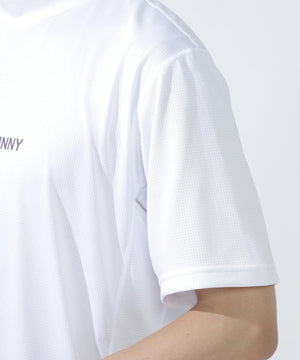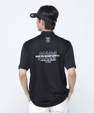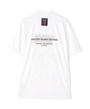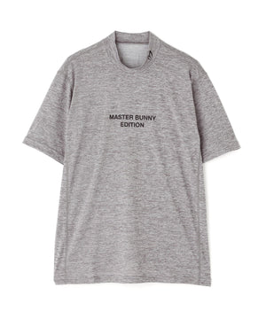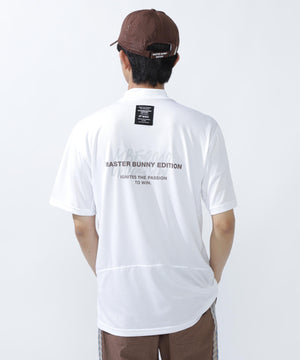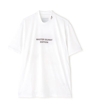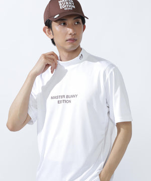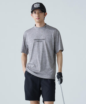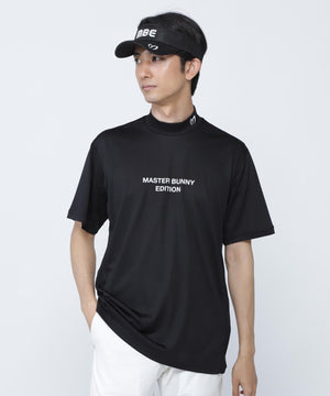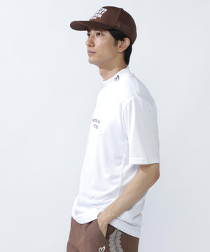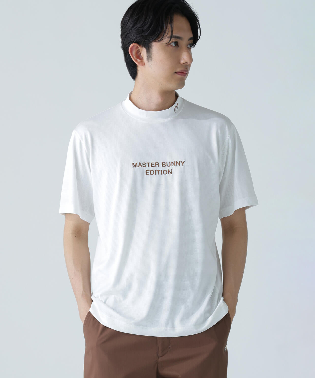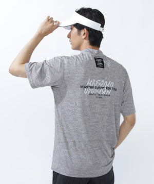 前後の身頃にあしらったグラフィックがコーディネートのアクセントになる、ベアメッシュ半袖モックネックカットソー。