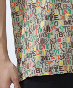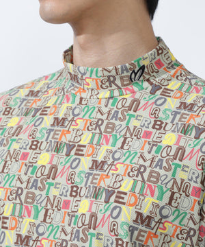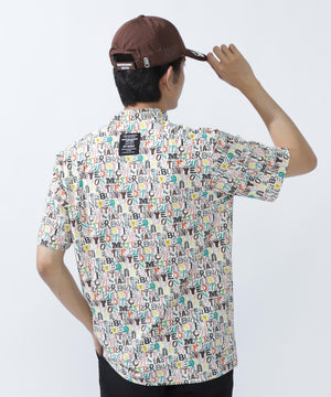 フォントや色味に変化をつけたロゴ柄がコーディネートのアクセントになる、4WAYナイロントリコットマルチロゴプリント半袖モックネックカットソー。