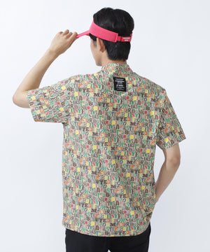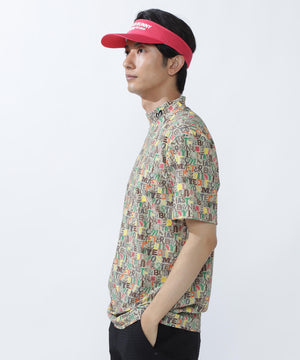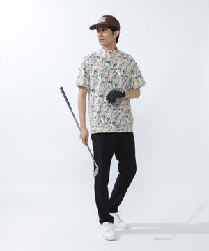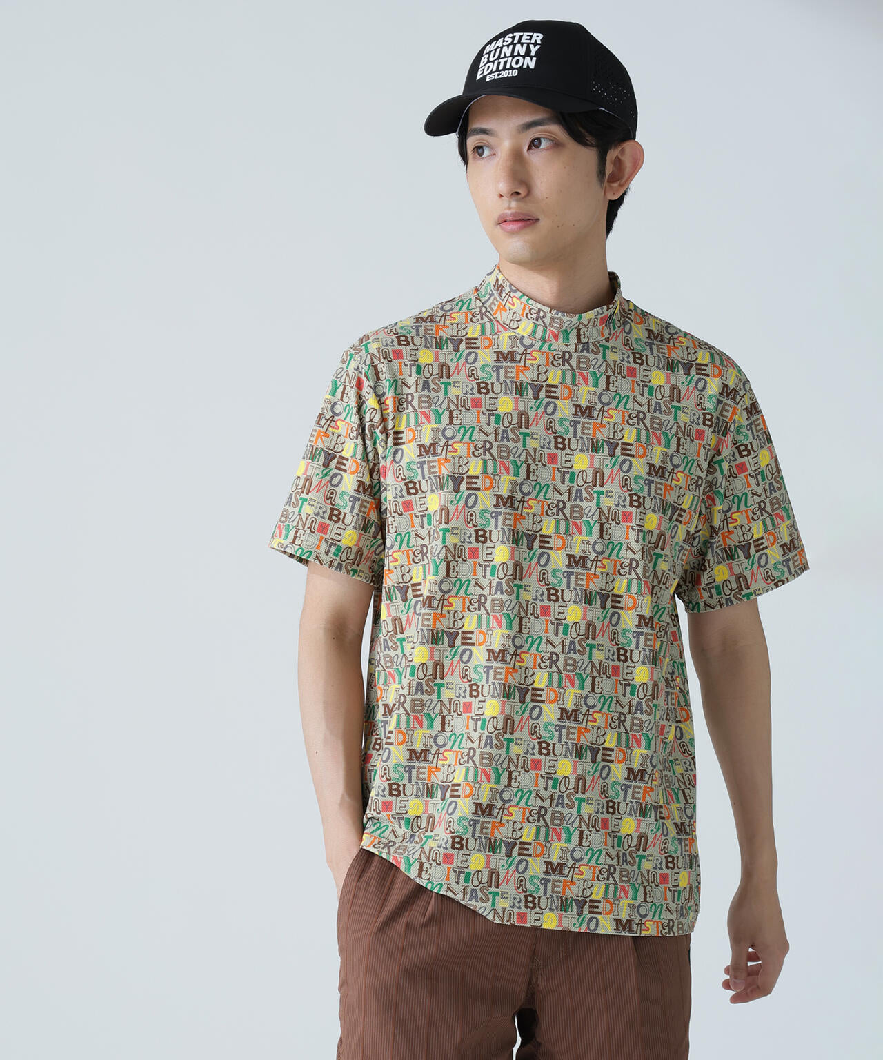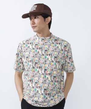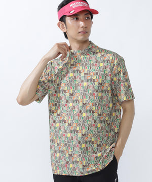 4WAYナイロントリコットマルチロゴプリント半袖モックネックカットソー