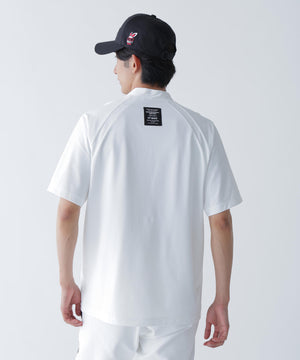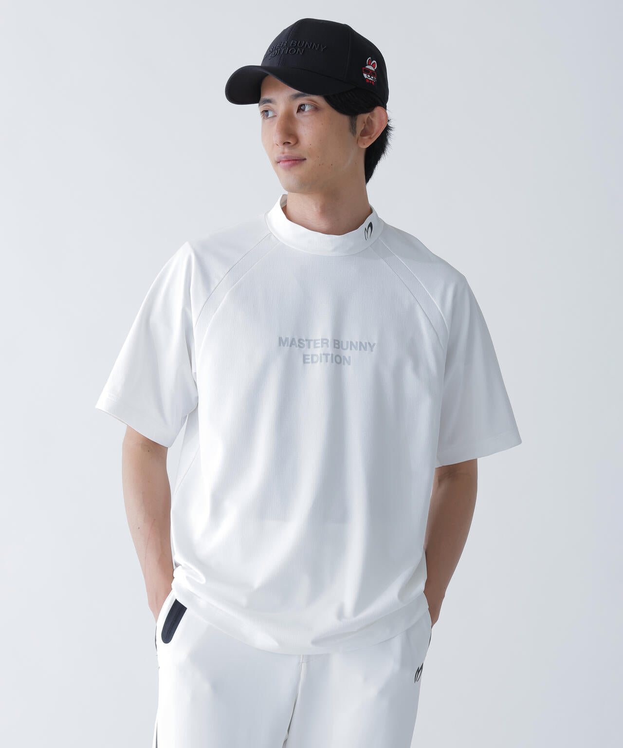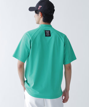ラグランスリーブの切替しで運動性を高めた、半袖ハイネックカットソー。