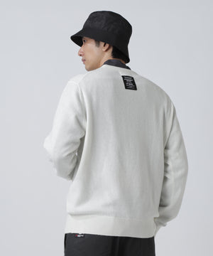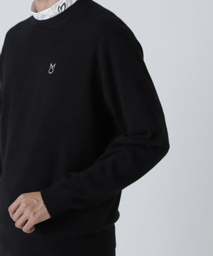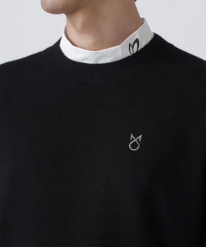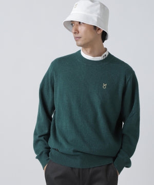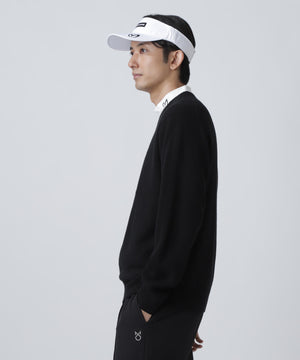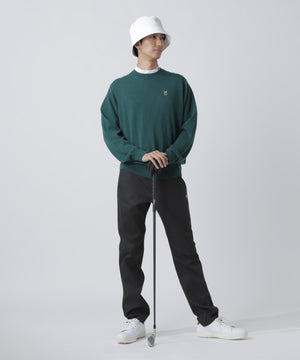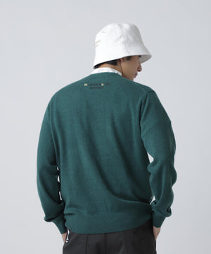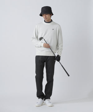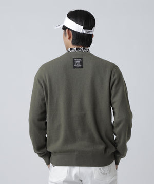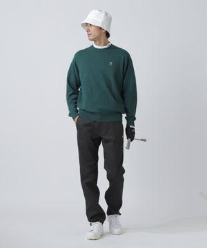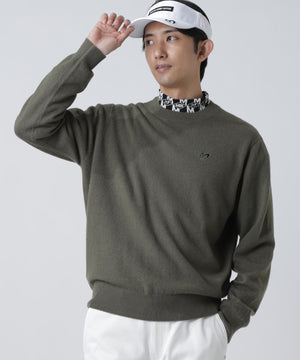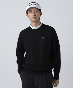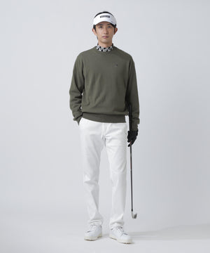 防寒シーズンのゴルフに最適な素材を使用してコーディネートに温かさと上品さをプラスできる、カシミヤクルーネックニットプルオーバー。