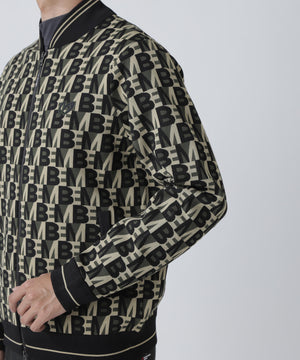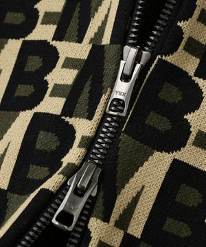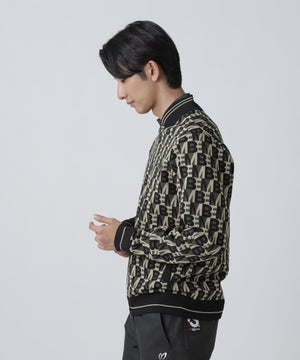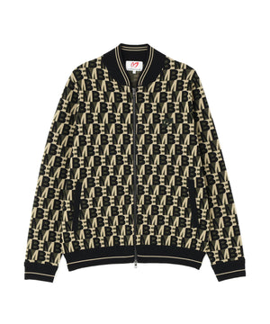 MBEロゴのKEY PATTERNで総柄を表現した、Regentフルジップアップニットブルゾン。