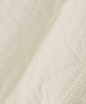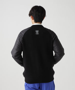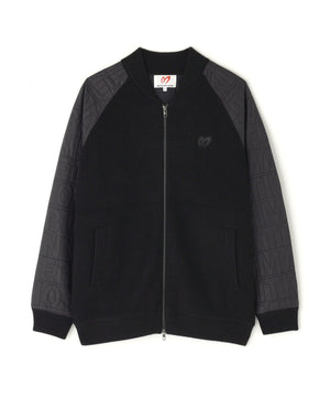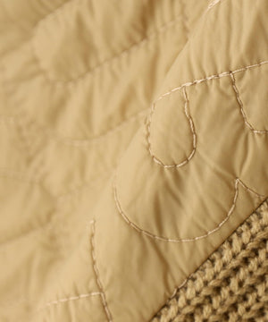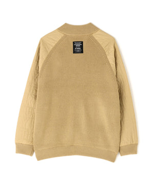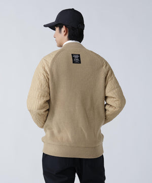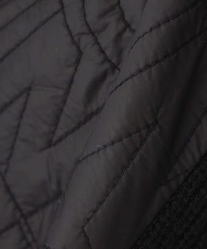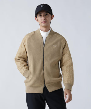 リブニットの身頃と中綿を入れたロゴキルトを大胆に切替えた、ニットジップブルゾン。