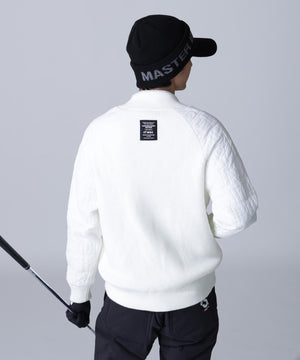 インナーを重ね着しやすいゆったり着られる程よく丸みのあるシルエットが柔らかい印象を与える、冬場のゴルフシーンで大活躍するハイブリッドデザインのニットアウターになっています。