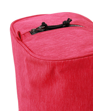 肩の負担を軽減する構造と背負いやすいショルダーストラップや、切れ込み部分にタオルを差し込んで使用すればタオルホルダーにもなる ネームプレートを付属しています。