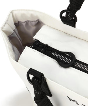ファスナーを開閉することで容量を調整できる、ロープハンドルカートバッグ。