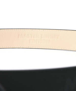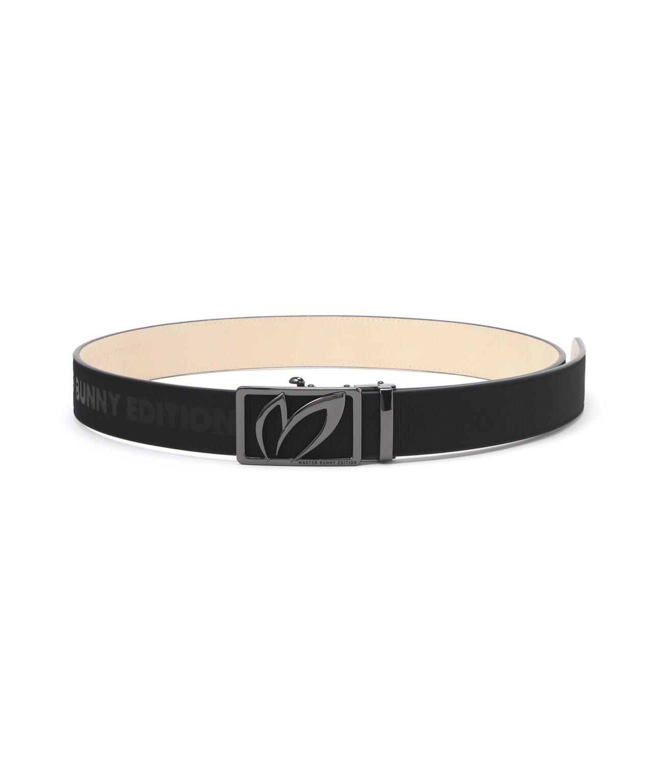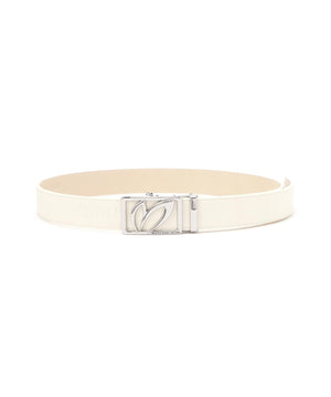 MBEロゴを入れた特徴的なスクエアバックルがコーディネートのポイントになる、ヌバックスライドバックルベルト。