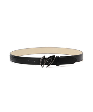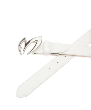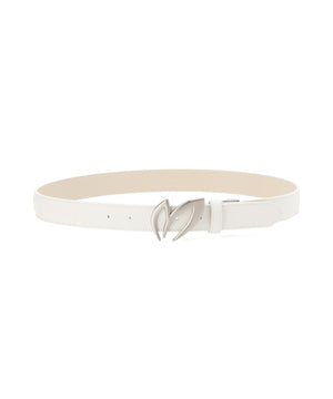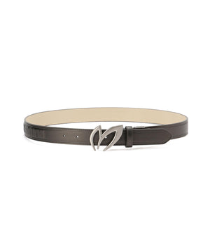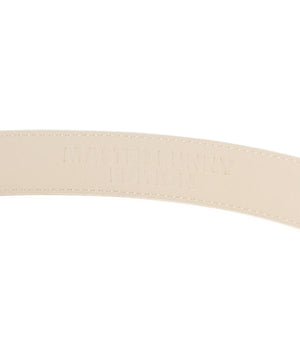 帯にエンボス加工のMBEロゴをさりげなく入れた、Mバックルロゴベルト。