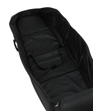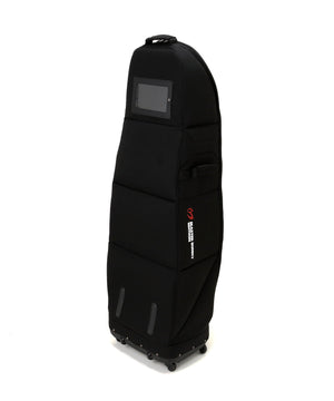 重たいキャディバッグを丸ごと包み込んで楽々持ち運べる、収納袋付きのキャスター付き折り畳みトラベルケース。