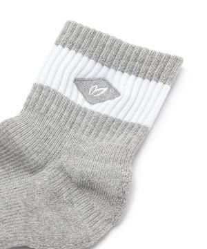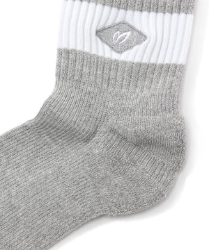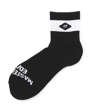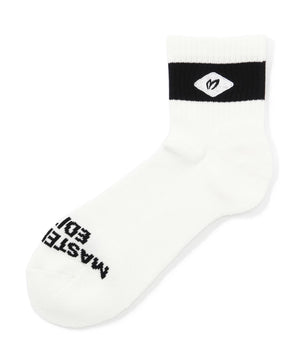 配色ラインに入れたMロゴのモフチーフがワンポイントになった、接触冷感ショートソックス。
