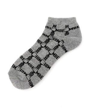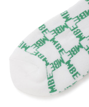 スクエア型のMBEのシーズンロゴで総柄を表現した、シーズン柄アンクルソックス。