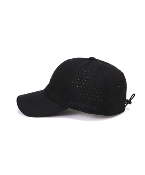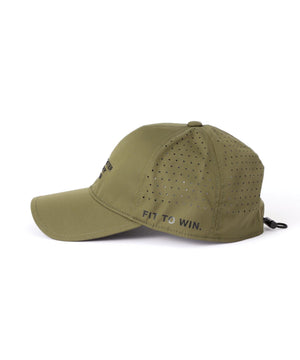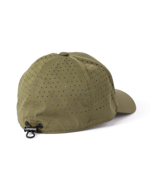 サイドからバックパネルにパンチングを施して通気性を与えた、JustFistパンチングキャップ。