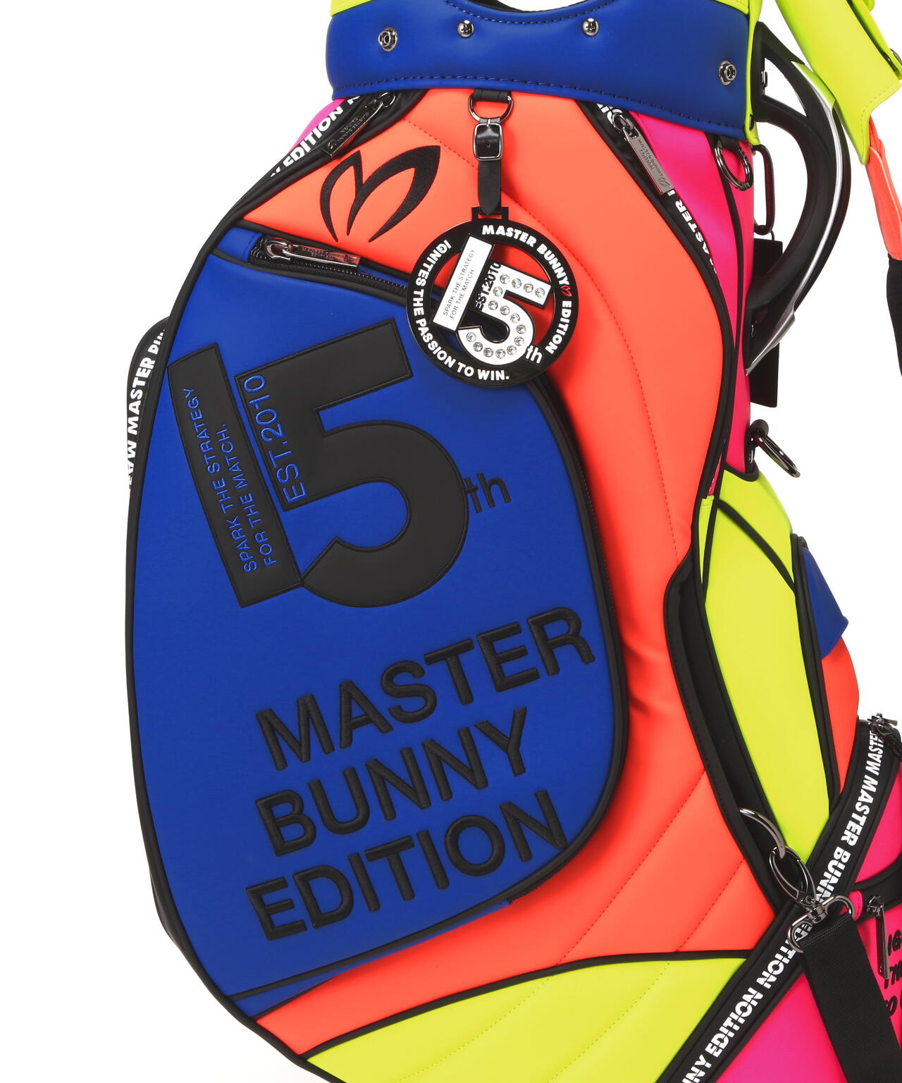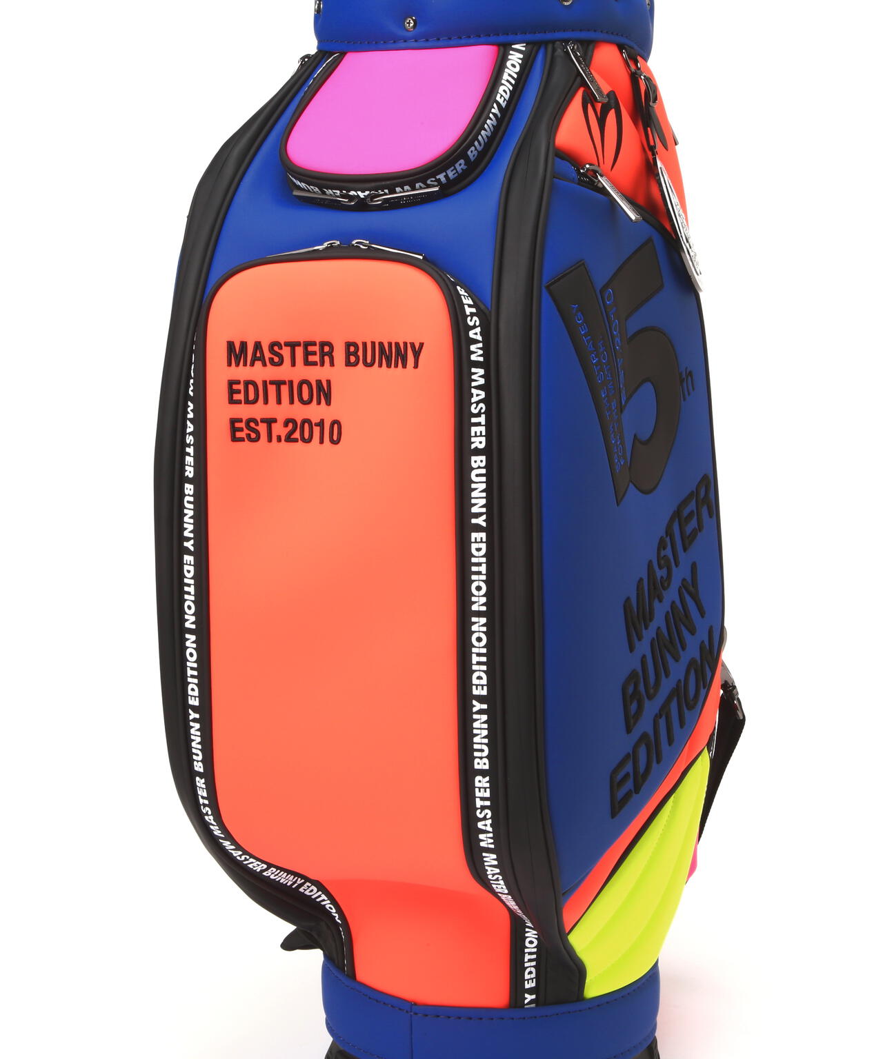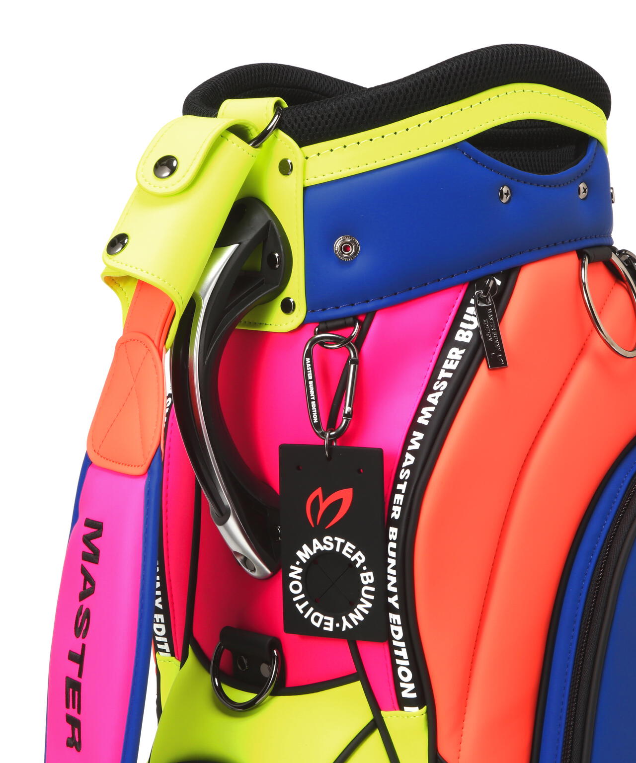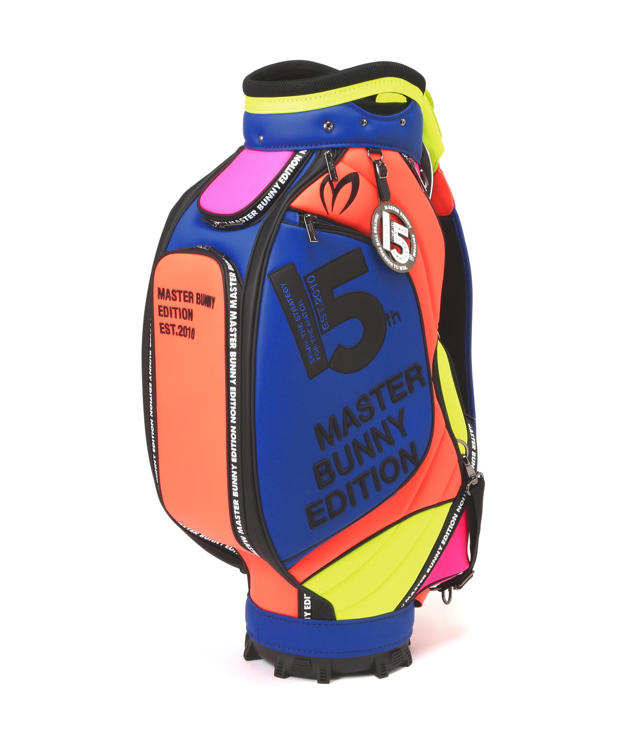15年を経てアップグレードしたNEW MBEの今期のグラフィックをカラフルなルックスで表現した、46インチ対応の2025年モデル マルチカラーPRO仕様キャディバッグ。バランスのとれたクラブ収納を可能にする分割口枠を配置した、天然素材に近い上質な風合いのタフな合皮素材を使用した安定性の良い自立式のキャディバッグです。大容量の側面ポケット、ボールや小物収納に便利なオープンポケット、ジップポケットの搭載など、大小様々な機能的なポケットと使いやすさと充実の収納スペースをしっかり確保した作りです。 肩の負担を軽減して背負いやすさを追求したショルダーベルトやネームプレート、15thをデザインしたサークル型のチャームの装備など、沢山のこだわりを詰め込んで作られたプロ仕様のキャディバッグです。お揃いでコーディネートを楽しめる、ヘッドカバーやパターカバーなどの15thのモチーフをあしらった同シリーズのアイテムを多数ご用意しています。