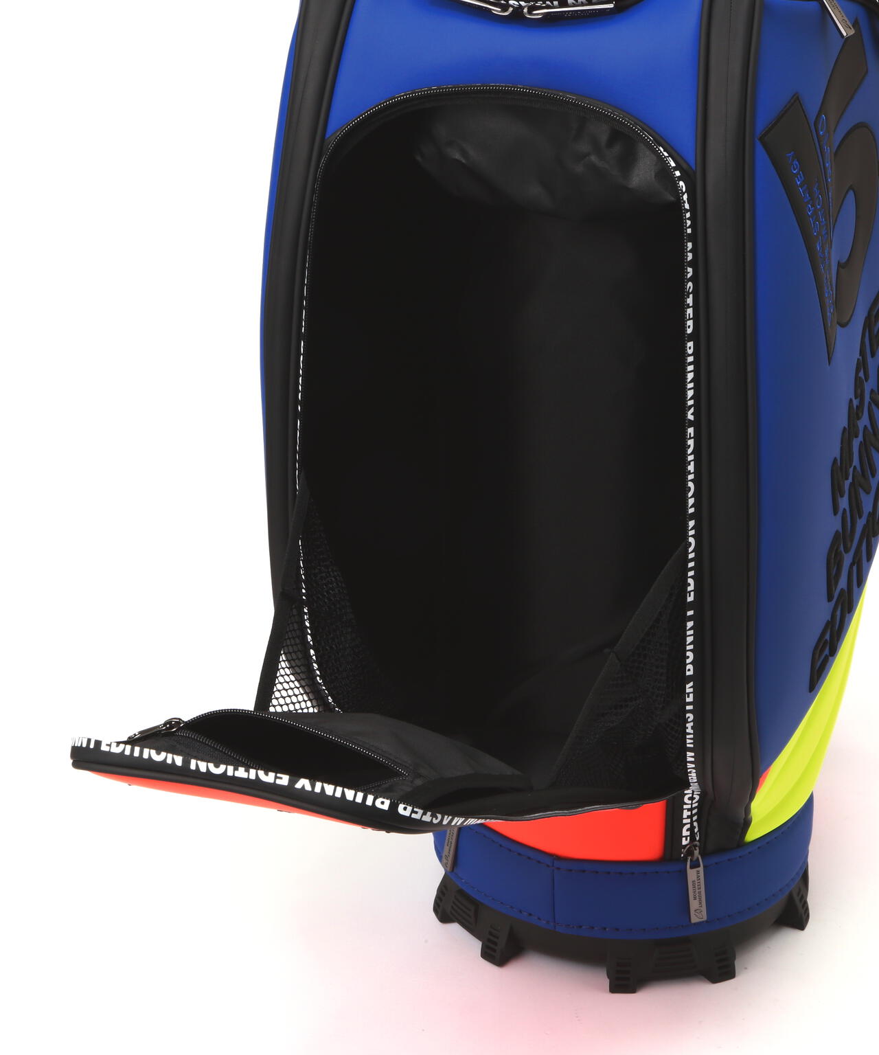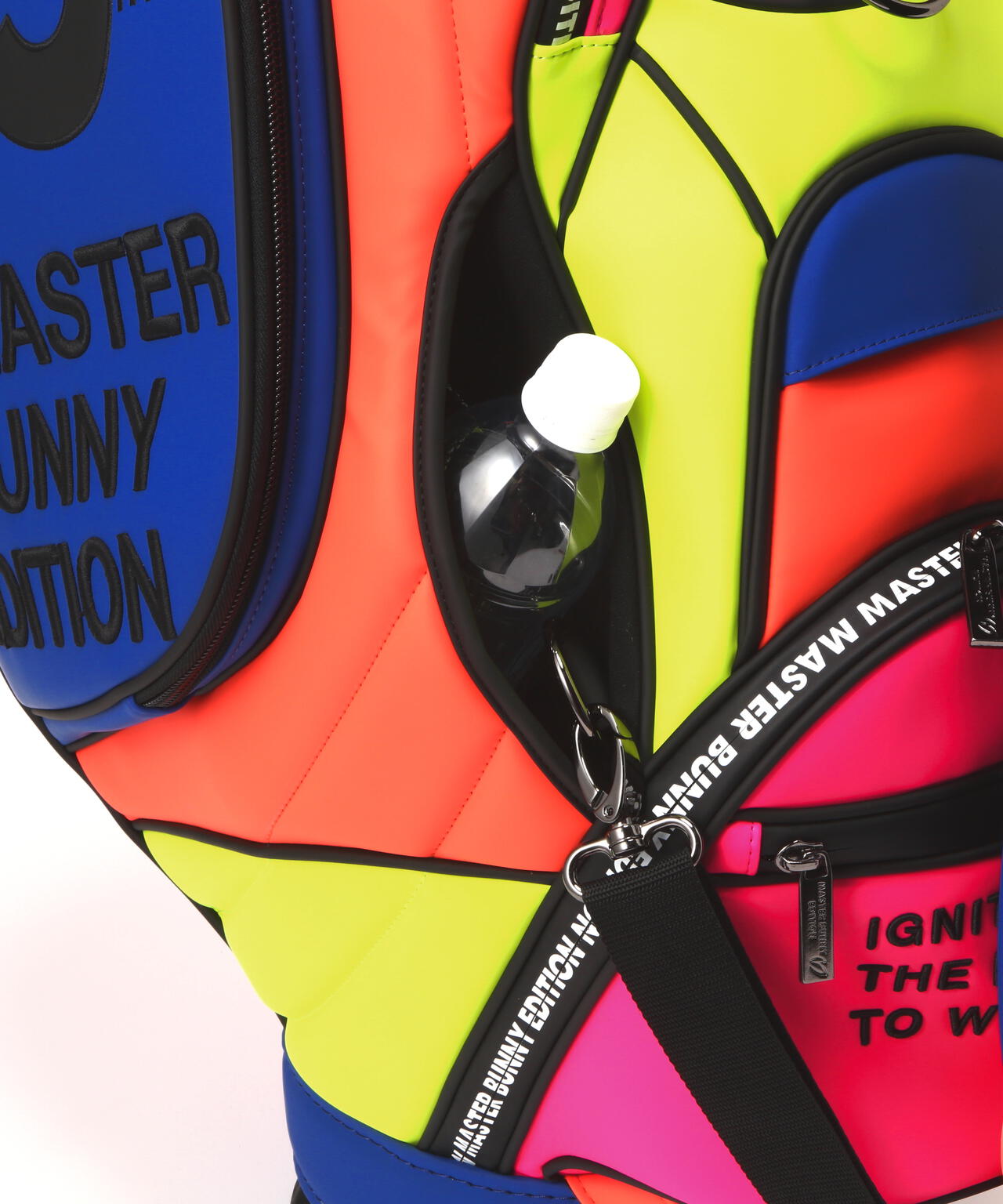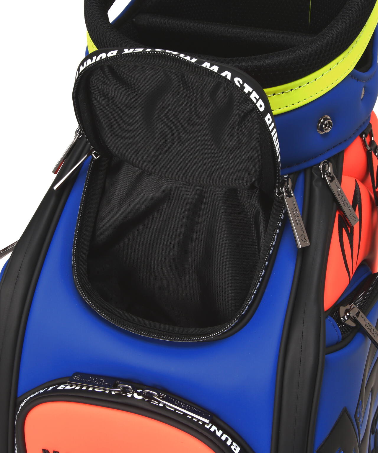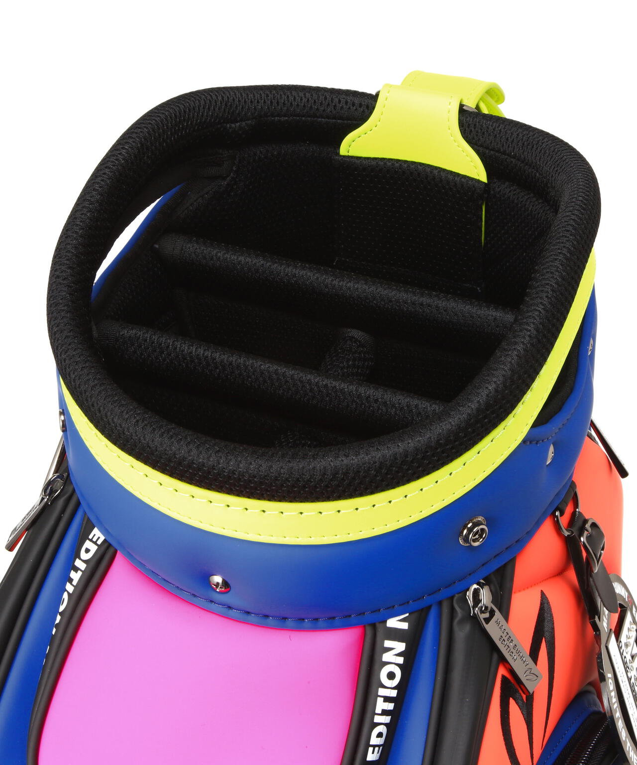 15年を経てアップグレードしたNEW MBEの今期のグラフィックをカラフルなルックスで表現した、46インチ対応の2025年モデル マルチカラーPRO仕様キャディバッグ。バランスのとれたクラブ収納を可能にする分割口枠を配置した、天然素材に近い上質な風合いのタフな合皮素材を使用した安定性の良い自立式のキャディバッグです。大容量の側面ポケット、ボールや小物収納に便利なオープンポケット、ジップポケットの搭載など、大小様々な機能的なポケットと使いやすさと充実の収納スペースをしっかり確保した作りです。 肩の負担を軽減して背負いやすさを追求したショルダーベルトやネームプレート、15thをデザインしたサークル型のチャームの装備など、沢山のこだわりを詰め込んで作られたプロ仕様のキャディバッグです。お揃いでコーディネートを楽しめる、ヘッドカバーやパターカバーなどの15thのモチーフをあしらった同シリーズのアイテムを多数ご用意しています。