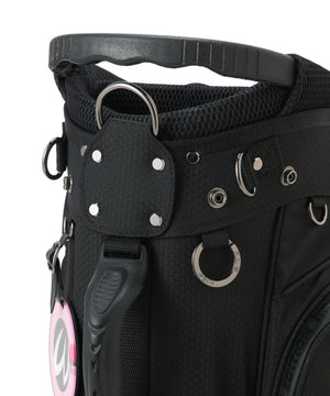 ピンクとターコイズブルーの新鮮なロゴやディテールがゴルフ気分を盛り上げてくれる、46インチ対応リバースロゴスタンド式キャディバッグ。