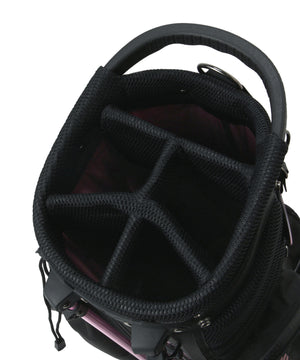 バランスのとれたクラブ収納を可能にする5分割の口枠と一体型ハンドルで持ち運びを容易にした、スタンド式のスタイリッシュなキャディバッグです。